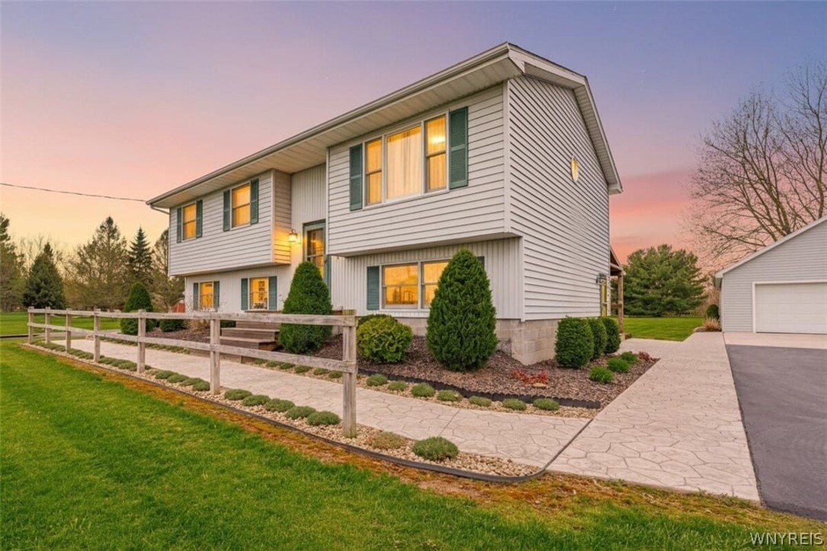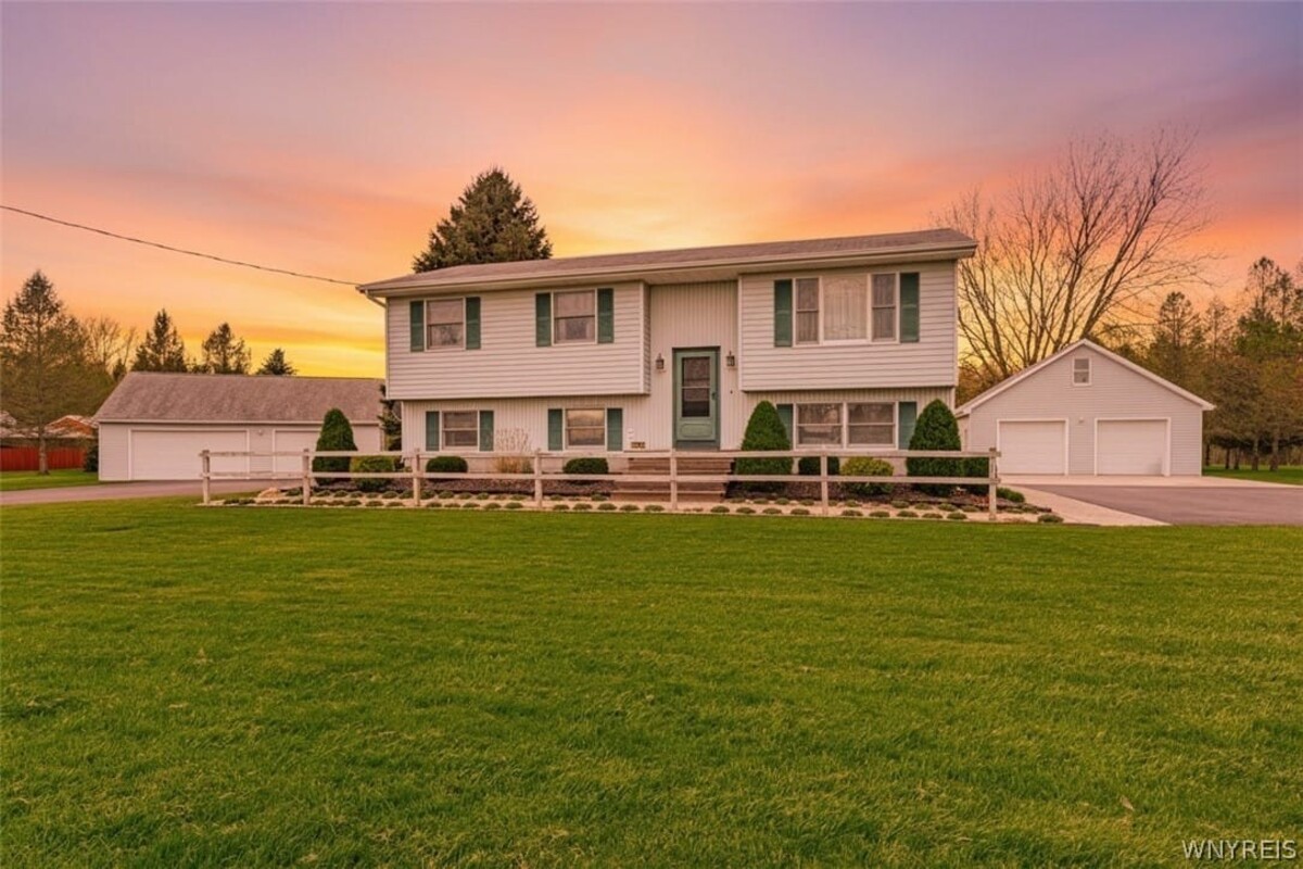 Remarkable 2 family home on over 2 acres of well groomed, beautiful landscape plus 2 outbuildings. Upper unit has large living room/dining room combination & charming wood cabinetry kitchen with solid surface counters & appliances. Exceptionally large main bedroom that could be converted back into 2. Updated bath and 2nd bedroom complete this owners unit. Lower unit has a large living room, dining and kitchen combination area complete with solid surface counters & appliances. Updated bath & 2 ample sized bedrooms. Common maintenance room for hot water tanks & washer/dryers. Exterior has a full house length covered deck to relax or for entertainment. Need storage, workspace or are you a car person? How about not 1 but 2 30x40 garages with separate blacktop doublewide driveways. 1st garage has walk-up stair with loft area, complete with 100 amp electrical service. 2nd garage has pull down stairs for upper storage, 100 amp electrical service & propane heater. This home is currently owner occupied and has been living as a single family home for years. Possible monthly rental income of $1200 / $1000 or great in-law setup. See also MLS #B1676111.
