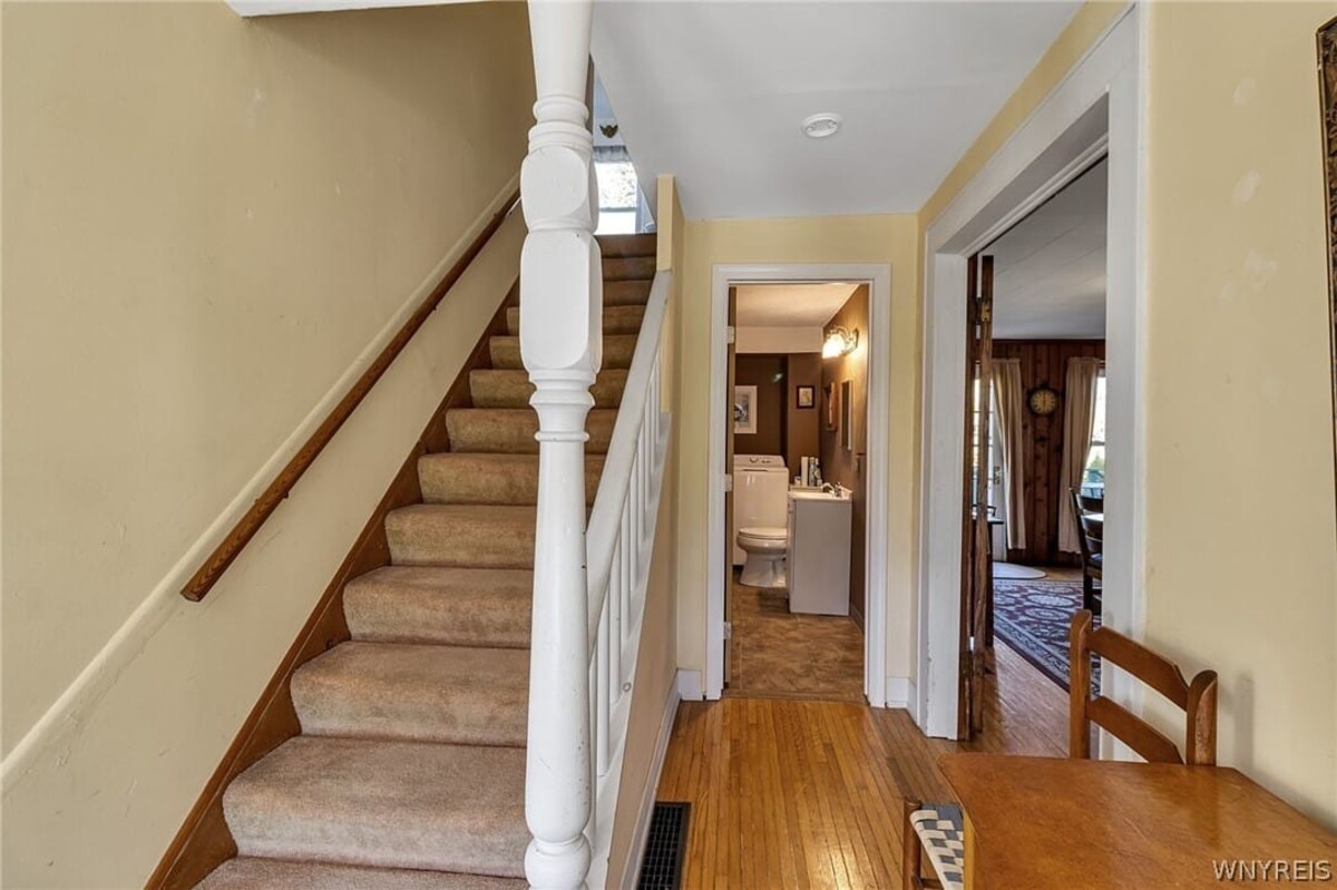 Step into this absolutely charming farmhouse. You will feel at home the minute you enter the home. Wonderful front porch to rock your days away. 3 Bedrooms, 2 full baths. First floor laundry with full bath. Eat-in kitchen with appliances (non working dishwasher). Knotty pine dining room with built in corner hutch, hardwood floors, pass through to kitchen and doors to deck. Front foyer with original front door, also has HDWD. Living room has built in book shelves and cabinetry. 3 Bedrooms up and full bath. Large mudroom. 2 Car garage. Water purification system. Country living at its best! Home being sold in as is condition. Offers due May 4th @ 3pm.