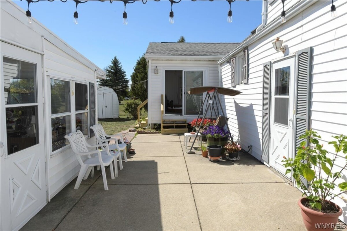 This charming Town of Lewiston Cape is calling your name! 2+ bedrooms, step inside and youll discover a dedicated first-floor space that the seller used as a spacious third bedroom. The home features two full baths, a formal dining room, and a huge living room addition complete with a cozy gas fireplace. Perfect for taking the chill off on cold winter nights while central A/C keeps you comfortable all summer long. Just off the living room, youll find an enclosed patio overlooking the fully fenced backyard and featuring a sunken hot tub. An ideal spot to unwind after a long day. (Hot tub needs a new heater and will convey as-is.) Outside, enjoy the convenience of a 2.5-car garage and multiple spaces for entertaining, including an open patio and a fully enclosed, freshly updated patio off the garage. The large fenced backyard offers plenty of room for play, gardening, or gatherings, and also includes a handy storage shed. Recent updates provide added peace of mind, including brand-new 2nd floor bedroom carpeting, a recent tear-off roof, and a new water heater. This home is move-in ready and just waiting for your personal touch!