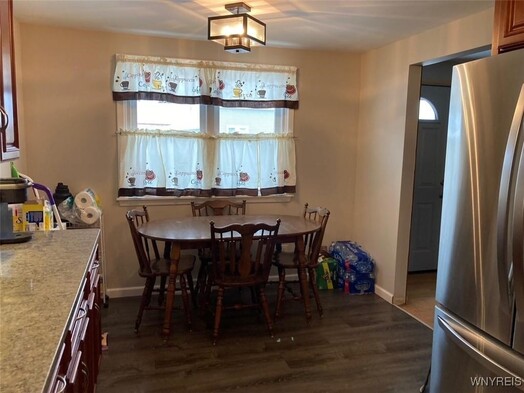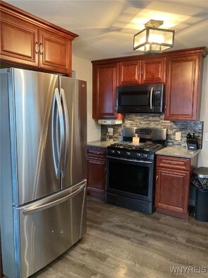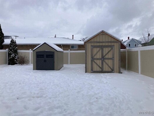 Rare opportunity for a MOVE-IN READY ranch in a vibrant neighborhood. This meticulously updated and maintained brick-front ranch offers three bedrooms and numerous updates including beautifully remodeled kitchen with quartz countertops and glass tile backsplash (stove, refrigerator and built-in microwave included) and a new Amish metal roof installed in 2024. Original hardwood floors and quaint laundry chute remain. Third bedroom currently used as a home office/doggy room. Other recent updates include new full glass front storm door, 5 new exterior doors, new 6-panel interior doors, windows, central air, concrete driveway, bathroom, and partially finished basement with recessed lights, great bar area, and too many closets to count! Owners will leave basement sound system, bar fridge, and bar TV so you'll be ready to host! Washer and dryer also included. Outside youll find an attached garage with new fireproof interior man door, 2 sheds, and newer vinyl fenced back yard. Home has Fios. Showings begin Tuesday, Jan 6th, offers due Tuesday, Jan 13th.