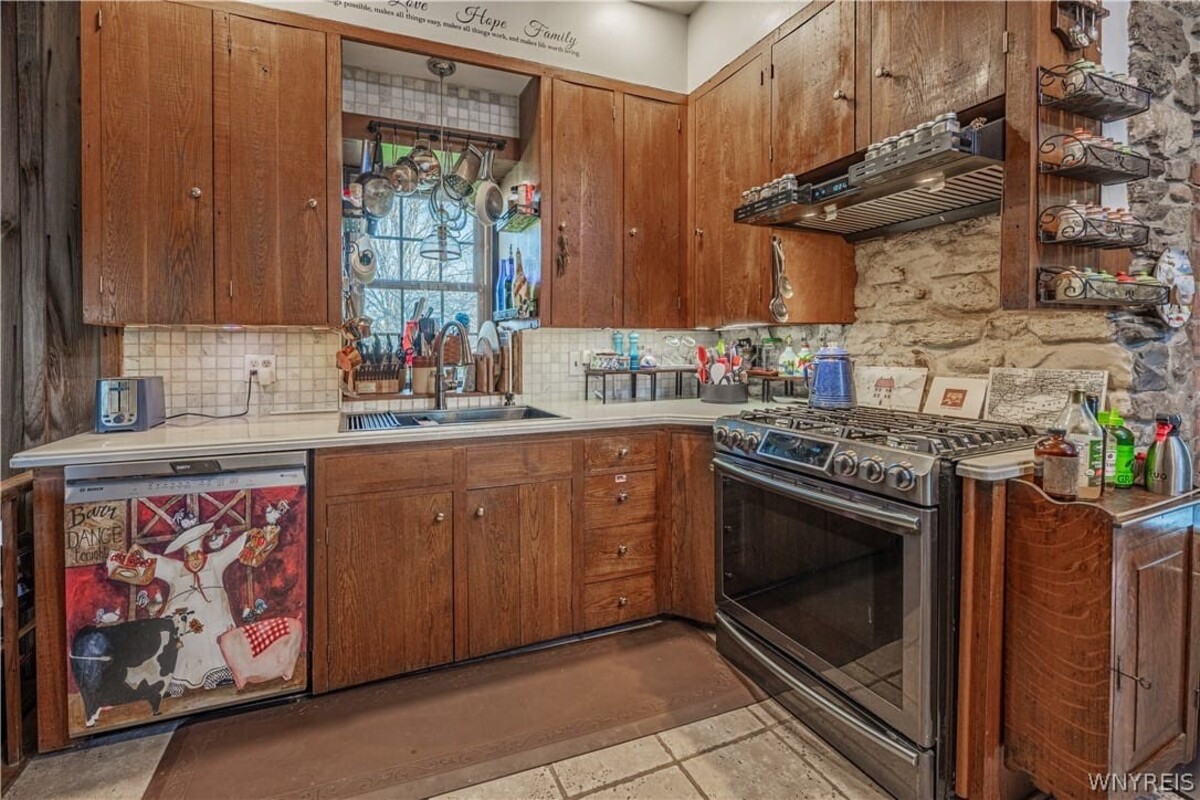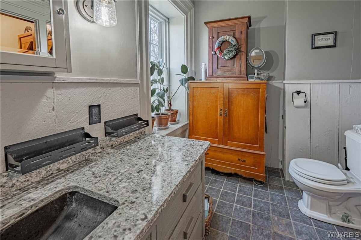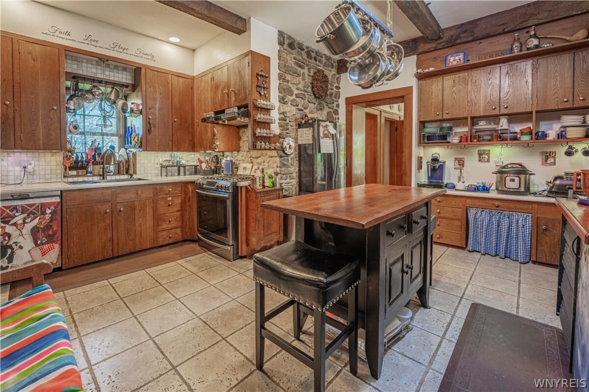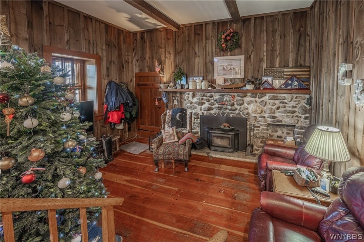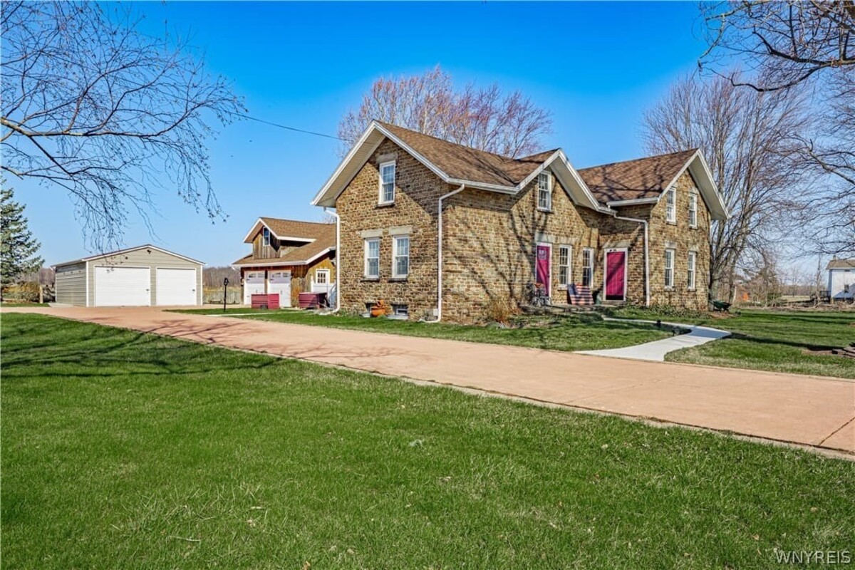 Enjoy one of Wilson's original stone homes constructed from local materials abundant to the area and time period. This 4 BR, 1.5 BATH Colonial features an attractive english cut fieldstone exterior and a variety of natural wide plank wood floors throughout most of the home. Large room sizes and two wood burning fireplaces add to the charm and needs of the period. A thoughtful layout provides 1st floor bedroom, full bath & laundry (A second laundry in basement), 3 bedrooms & 1/2 bath on floor 2. Also, 2.5 car attached garage with room to expand a second floor into useful living space. Full, dry basement w/ quality mechanics, workshop area and ample storage too. Detached 20x24 garage constructed in 2018, is clean & nice. Also, 3 sheds for additional storage & convenient dog run. Attractive stained concrete driveway. Dont miss an opportunity to purchase this well cared for home that has withstood the test of time. Showings begin at the OPEN HOUSE SATURDAY, APRIL 18TH 1PM - 3 PM. OFFERS REVIEWED AS RECEIVED.
