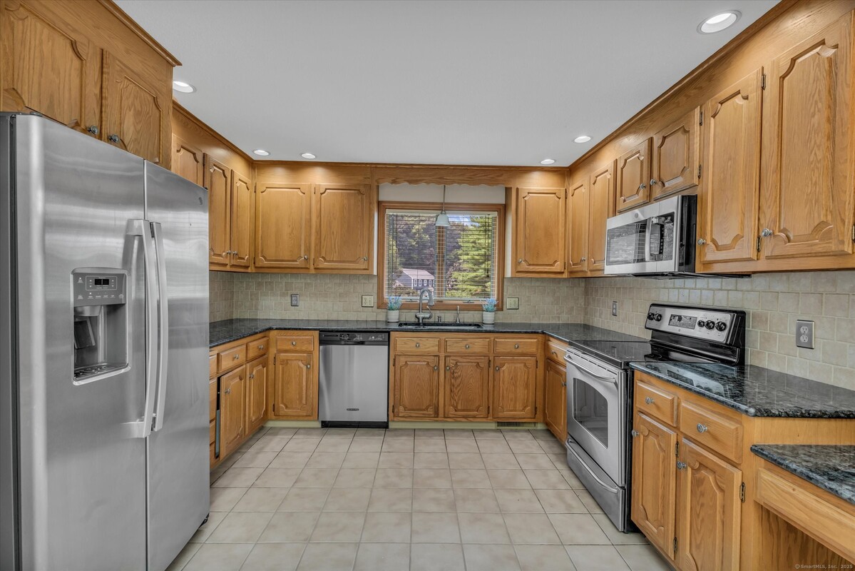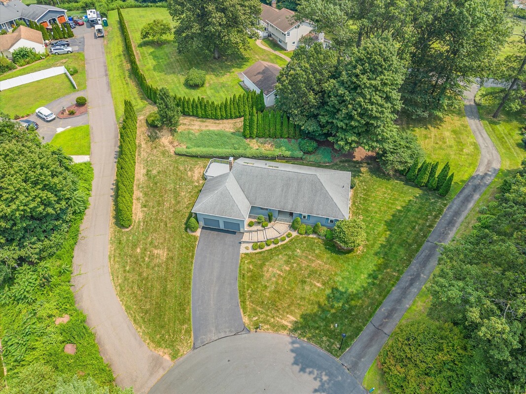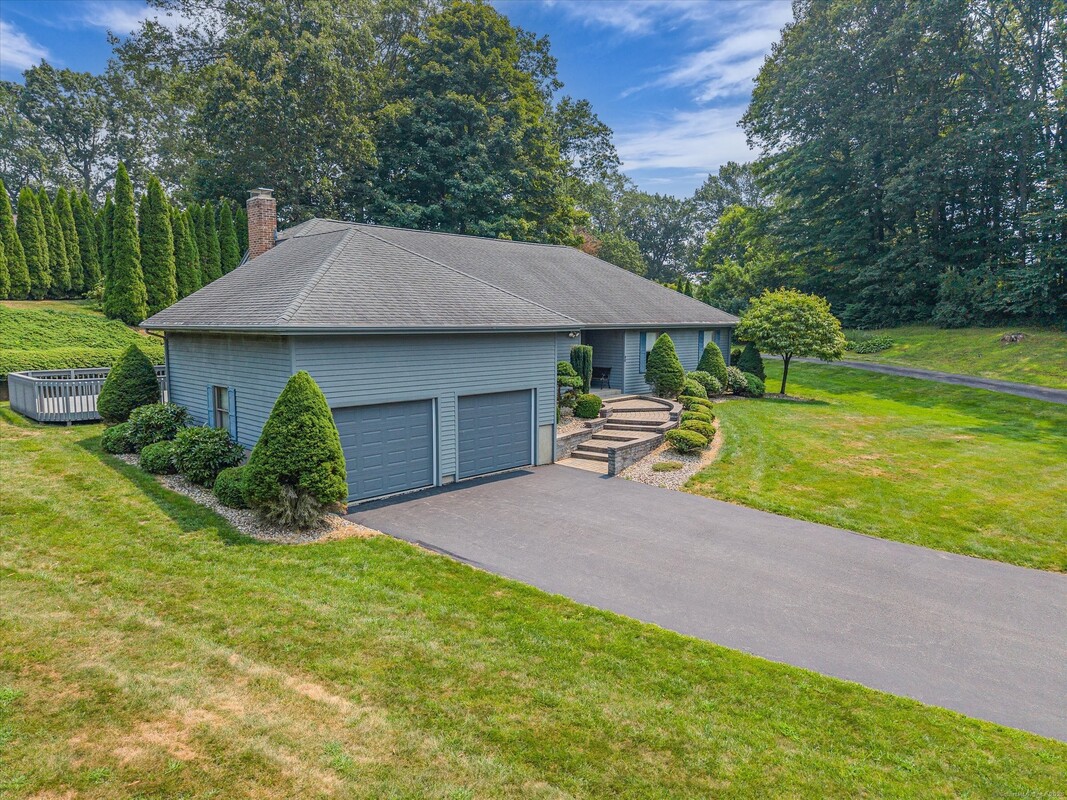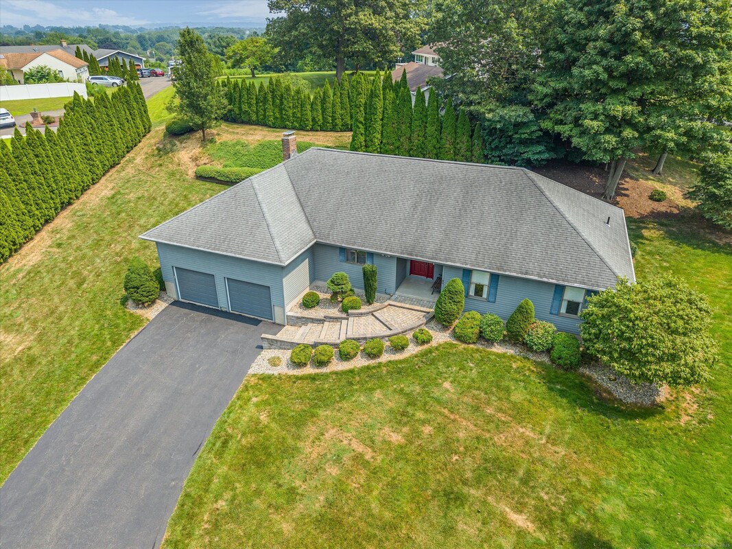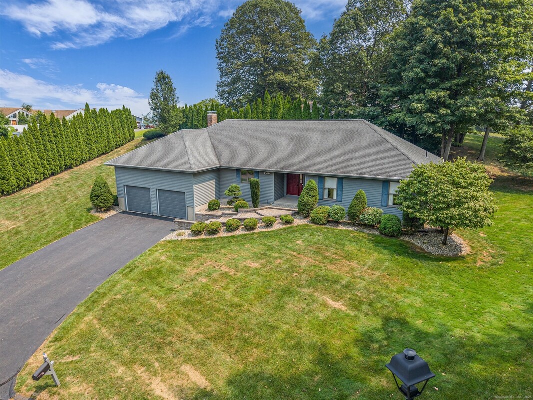 Discover this spacious Ranch-style home nestled at the end of a quiet cul-de-sac in desirable Rocky Hill. With 1,877 square feet of comfortable living space, this well-designed home features three generous bedrooms and 2.5 baths. The Primary Bedroom offers a private retreat with a full bath and walk-in closet. Enjoy cooking in the updated kitchen with granite countertops and tile flooring, or relax in the large Family Room complete with vaulted ceilings, a cozy fireplace, and sliders leading to a private deck-perfect for outdoor entertaining. The full basement offers the potential to add over 1,000 square feet of additional living space. Peaceful location, privacy, and plenty of room to grow-this home is a must-see!