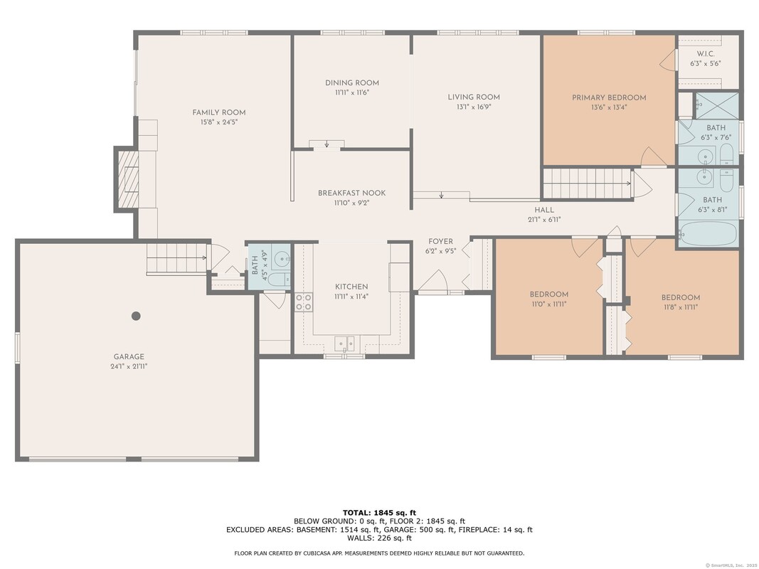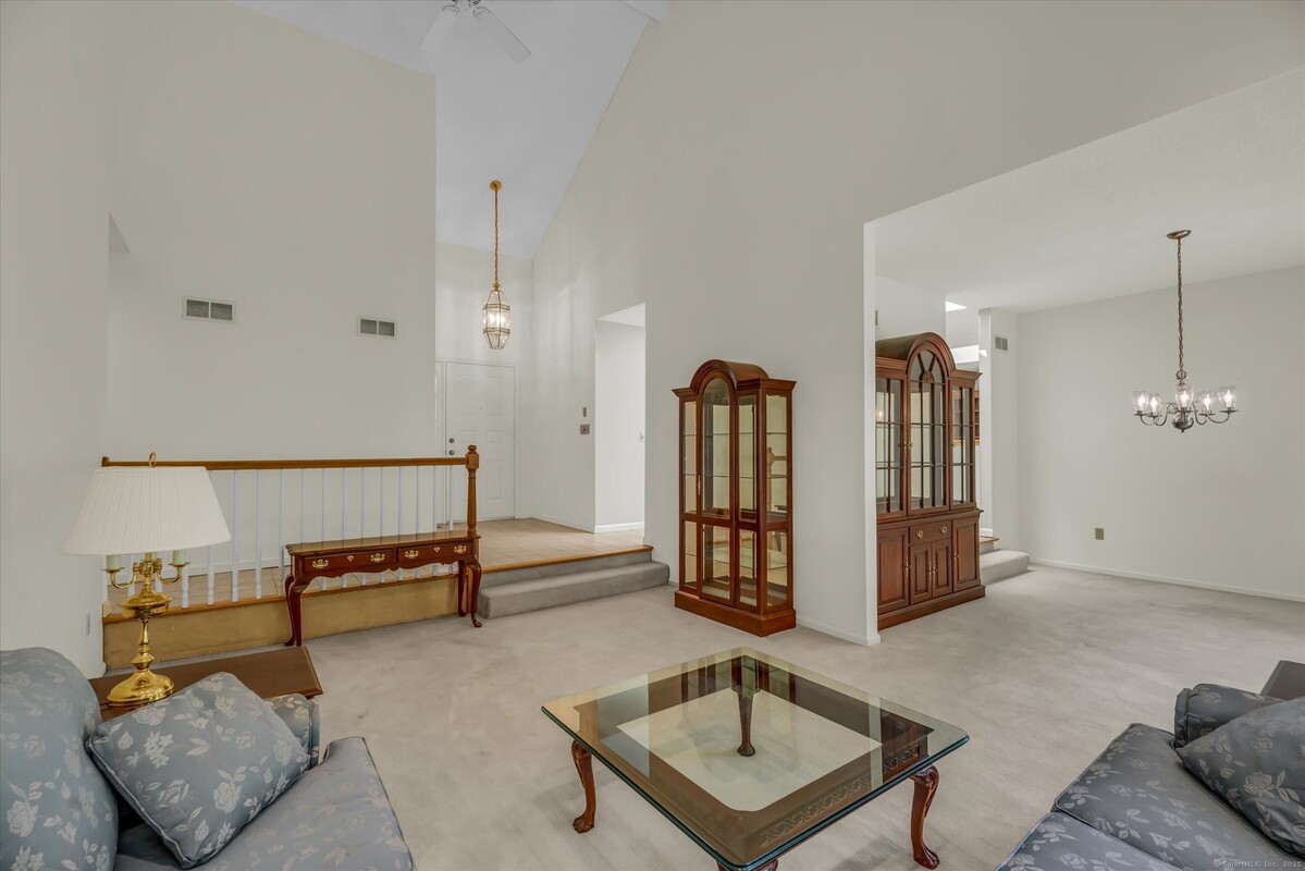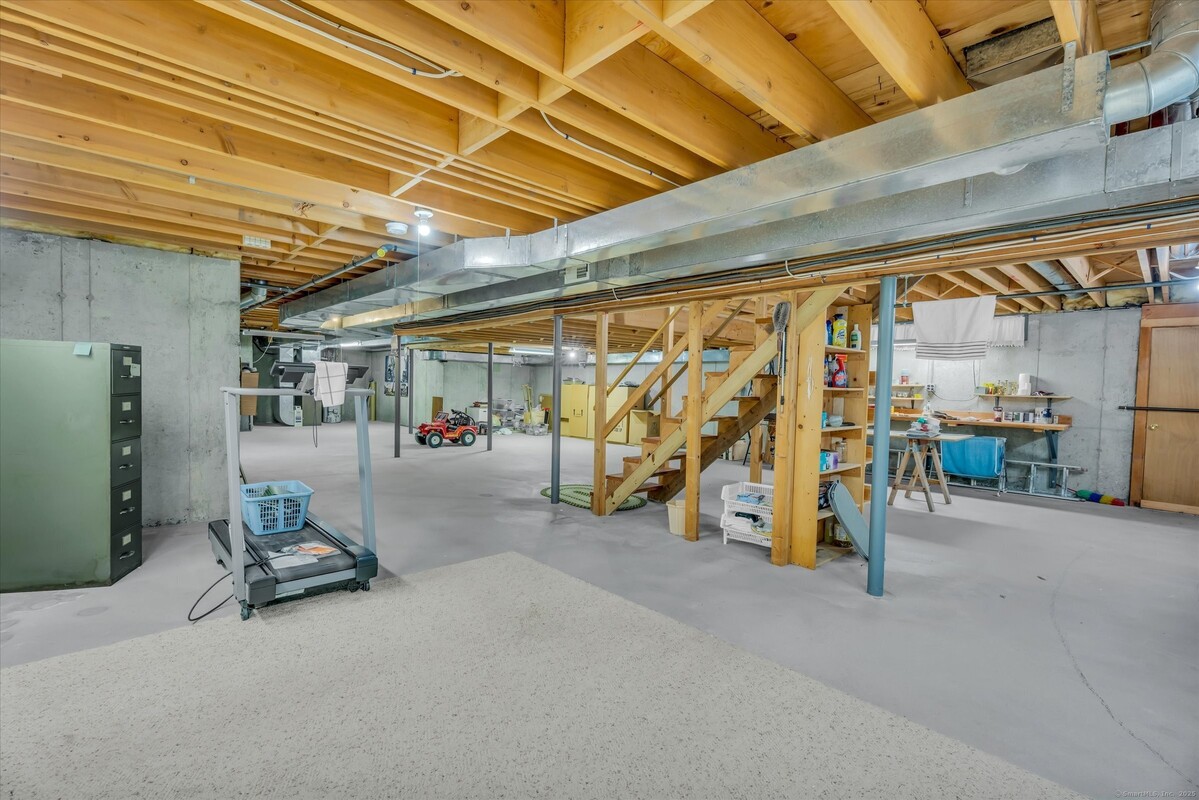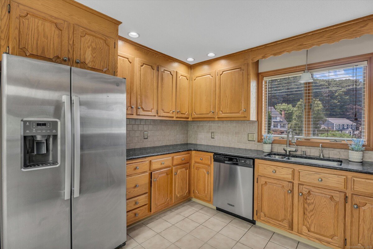 Discover this spacious Ranch-style home nestled at the end of a quiet cul-de-sac in desirable Rocky Hill. With 1,877 square feet of comfortable living space, this well-designed home features three generous bedrooms and 2.5 baths. The Primary Bedroom offers a private retreat with a full bath and walk-in closet. Enjoy cooking in the updated kitchen with granite countertops and tile flooring, or relax in the large Family Room complete with vaulted ceilings, a cozy fireplace, and sliders leading to a private deck-perfect for outdoor entertaining. The full basement offers the potential to add over 1,000 square feet of additional living space. Peaceful location, privacy, and plenty of room to grow-this home is a must-see!