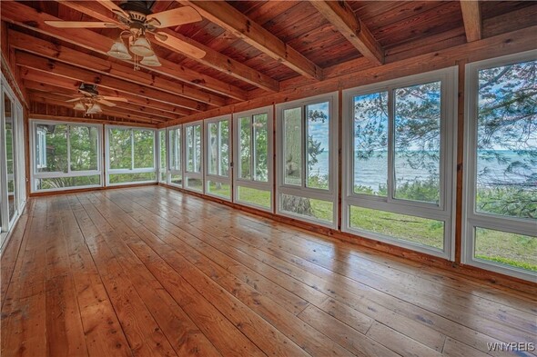 This is your opportunity to own a beautiful lake front property! This single owner home has been well taken care of. It features 4 good size bedrooms and 2.5 baths. A nice size formal dining room, a huge second living room along with a wood burning fireplace in each living room. Perfect for those lakefront winter nights. There is a second efficiency kitchen downstairs great for entertaining. The large primary bedroom has a walk in closet, walk in shower and overlooks the lake with it's large picture window. Enjoy the seasons on the enclosed second story deck with views of Lake Ontario and Toronto. Attached garage with attic storage. Also features a metal roof. Please do not drive down driveway without permission. Showings begin immediately.