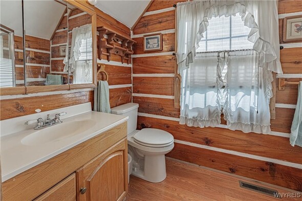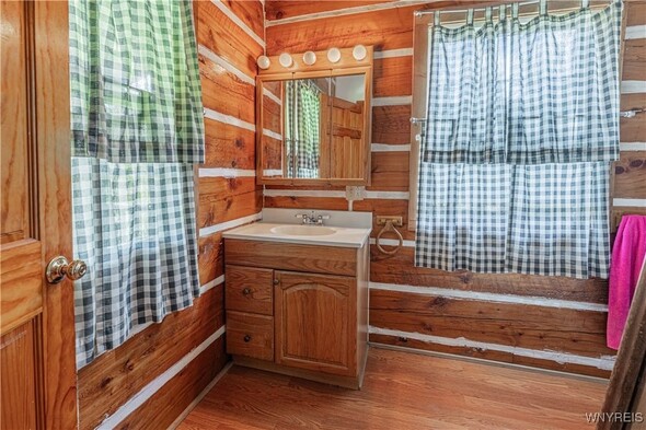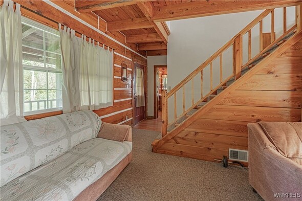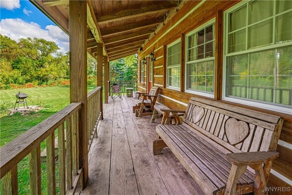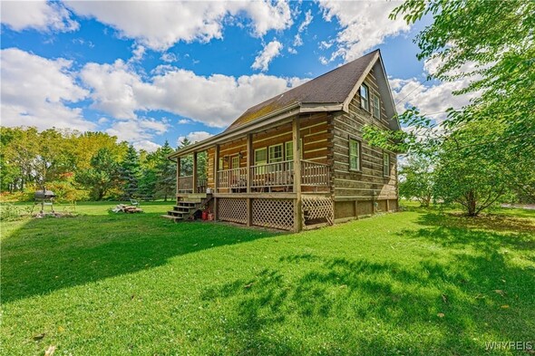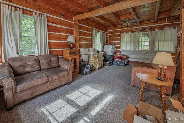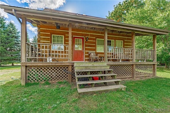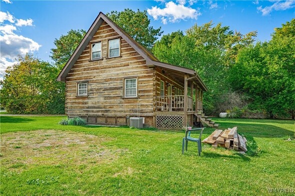 Quaint 2 bedroom 2 full bath log home. Open living space, first floor bath and laundry. Large rear porch great for those summer nights. This property is being sold as is. Any contents left at time of closing will convey with the property.