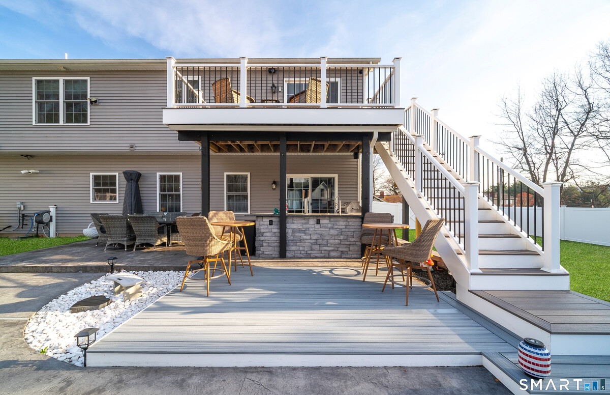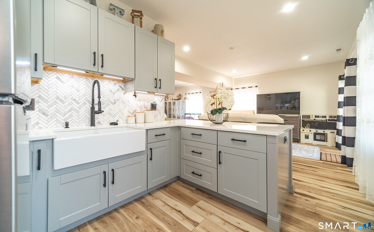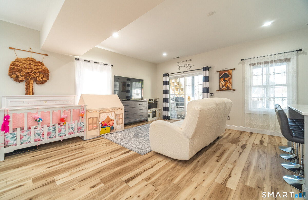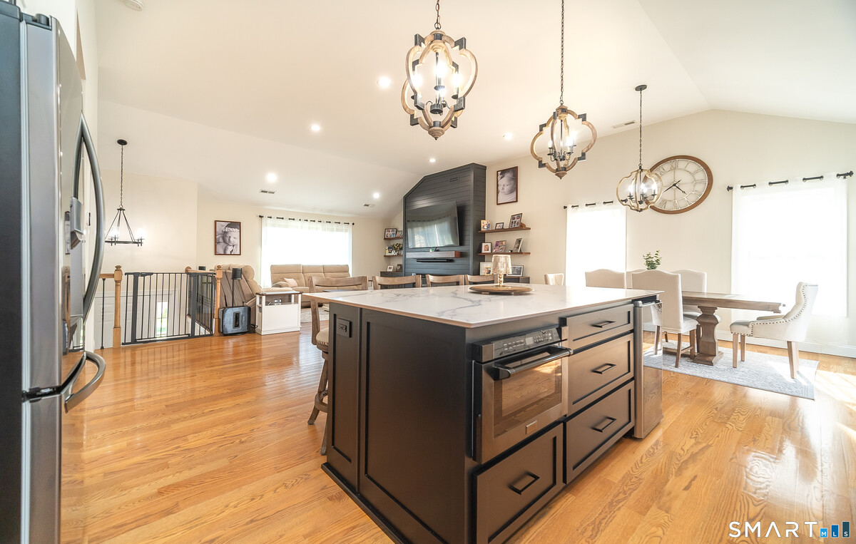 Welcome to a home that truly stands apart from the rest- this stunning, one-of-a-kind Raised Ranch, built in 2016, is loaded with high-end upgrades & thoughtful design throughout. Step through the front door & prepare to be impressed. The main level offers an open-concept living room, dining area & kitchen, all enhanced by soaring cathedral ceilings & an abundance of natural light. The completely remodeled (2025) kitchen is a show stopper, featuring a center island, quartz countertops, shaker style soft-close cabinetry & sleek stainless steel appliances. An oversized farmhouse sink overlooks the beautifully landscaped backyard, making everyday tasks feel anything but ordinary. Sliders off the dining area lead to a composite deck, perfect for morning coffee or evening relaxation. Back inside, the spacious living room features a brand new wall mounted electric fireplace with a custom shiplap entertainment center, completed by recessed lighting & upated fixtures throughout. The main level includes 3 bedrooms, including a primary suite with a tray ceiling, walk-in closet with a dedicated makeup area & a private full bath with granite countertops, double sinks & a tiled tub surround. A 2nd remodeled full bath with granite & tile tub surround is conveniently located off the hallway. Gleaming hardwood floors run throughout the main level. Head downstairs to a beautifully finished lower level offering incredible versatility. You'll find a stylish laundry area with shiplap accents,
