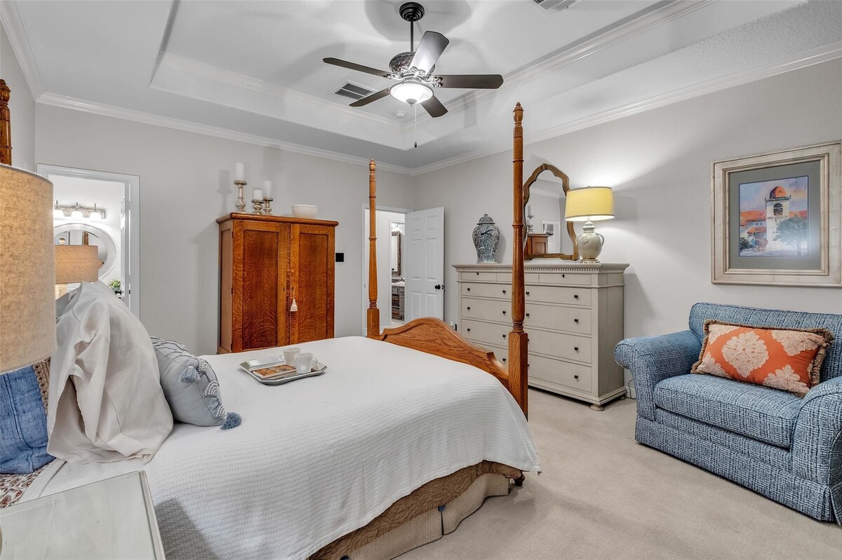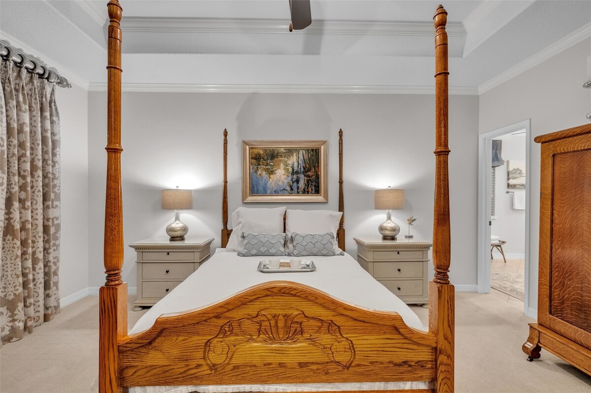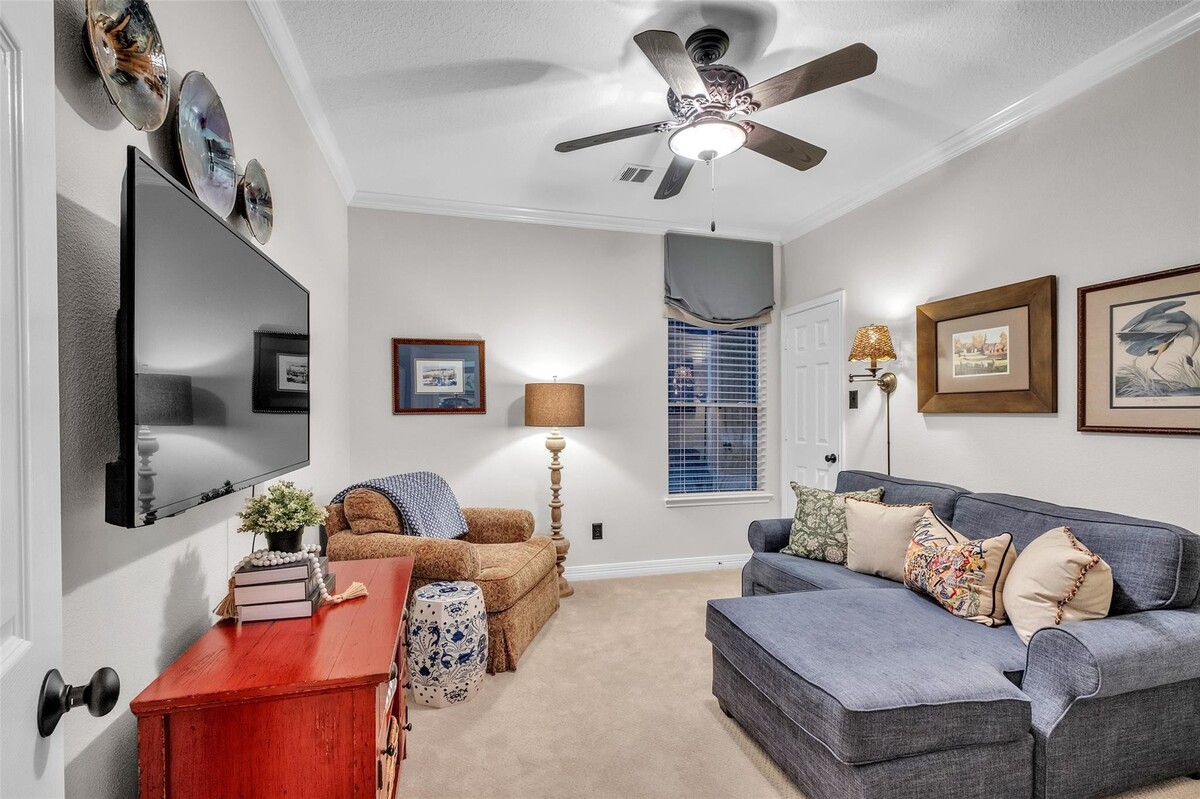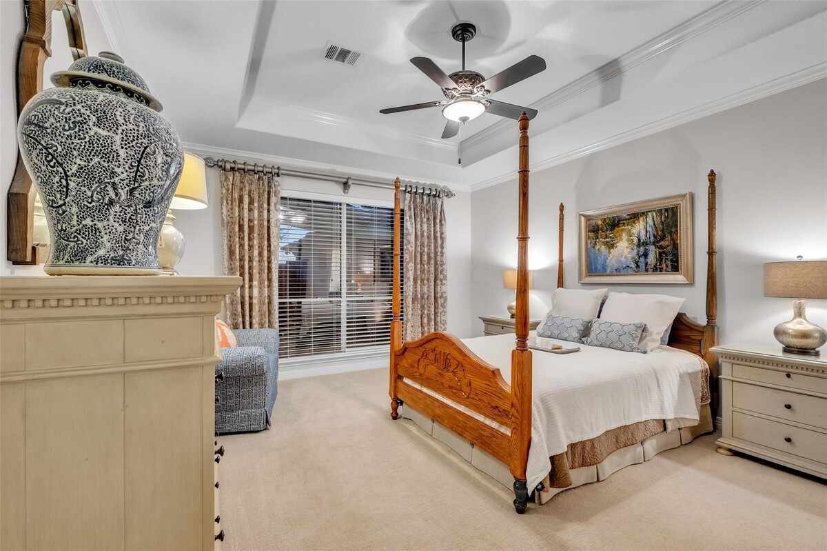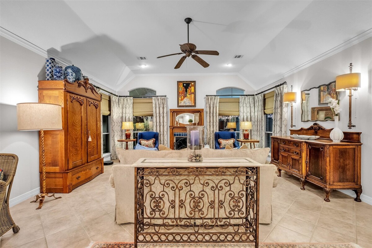 Meticulously maintained by its original owner, this 3 bed, 2 bath home with a private office & formal dining room in the highly sought-after Kelliwood Enclave is breathtaking. The immense pride taken in the home is apparent from the moment you walk in. Soaring 11–14' coffered ceilings, a grand foyer, gallery entry, and elegant cove lighting create a stunning first impression. Recent updates include the roof, water heater, double-insulated windows, and 2025 Lennox® HVAC. The oversized windows in the living room flood it with natural light - allowing you to overlook the pristine gardens & fountain. Complete JennAir Kitchen is a true showpiece. The massive primary suite boasts a 2023 renovated bath and oversized walk-in closet. At night, 360° landscape lighting brings the home to life. Finished garage with included a/c. Washer, dryer, refrigerator, and most window treatments convey. Zoned to Taylor High School, McMeans Jr. High, and Hayes Elementary. *NO SHOWINGS UNTIL OPEN HOUSE*