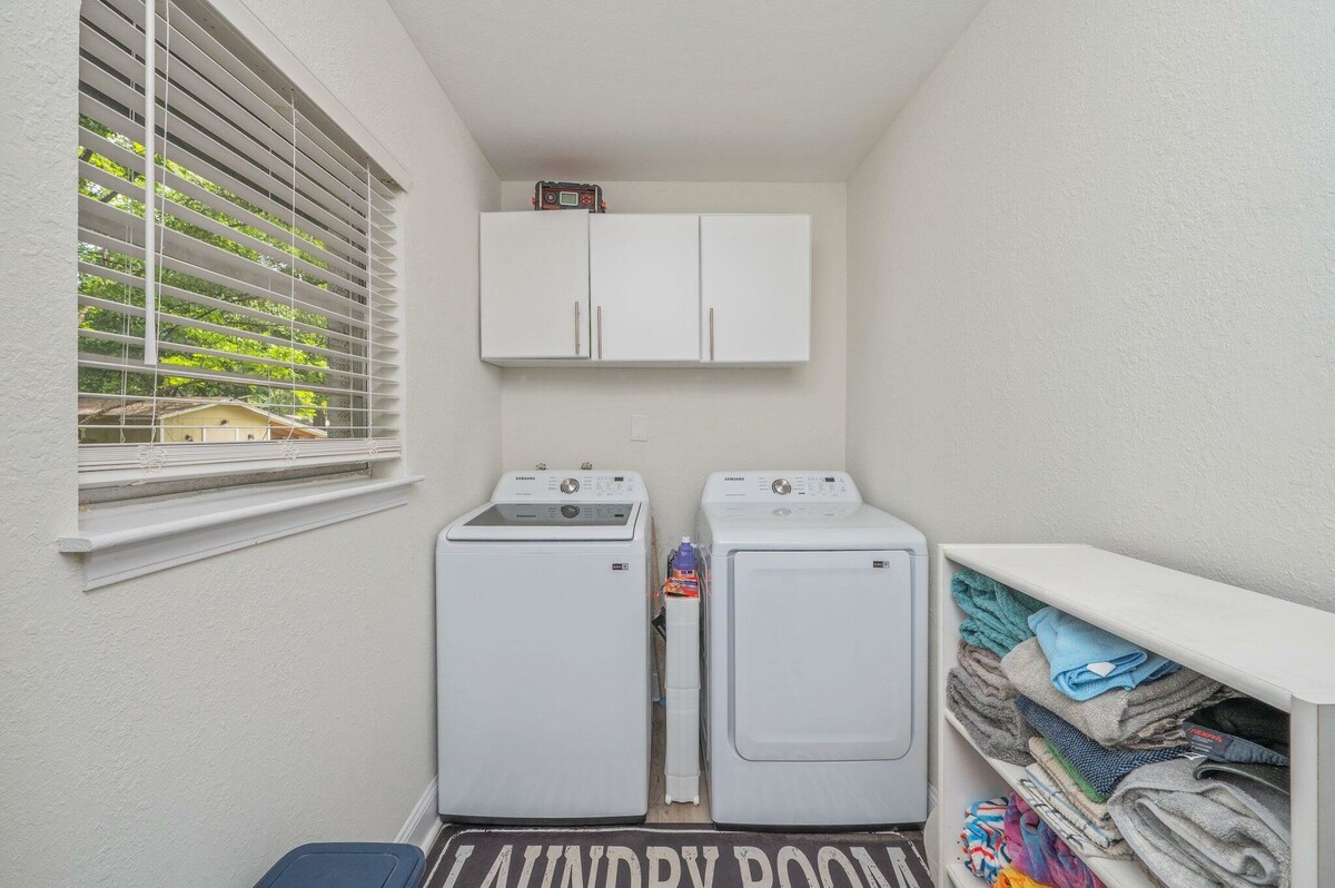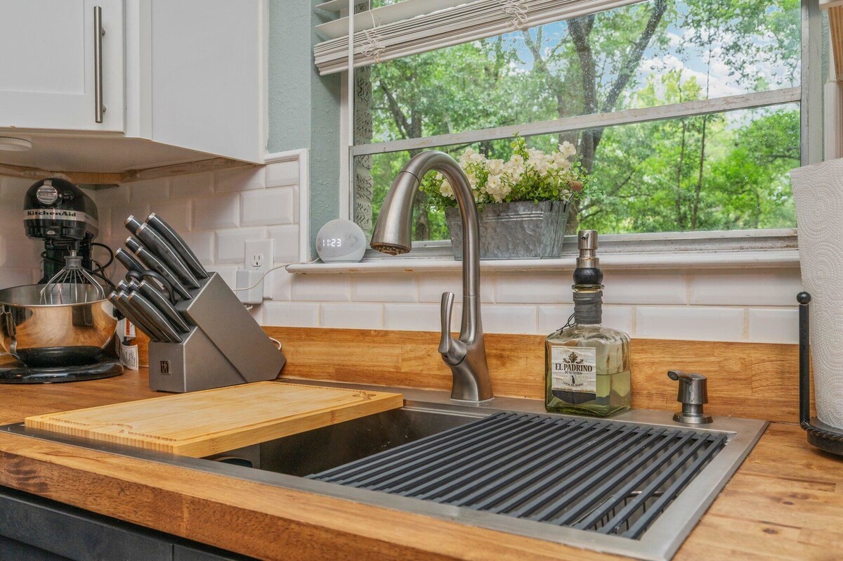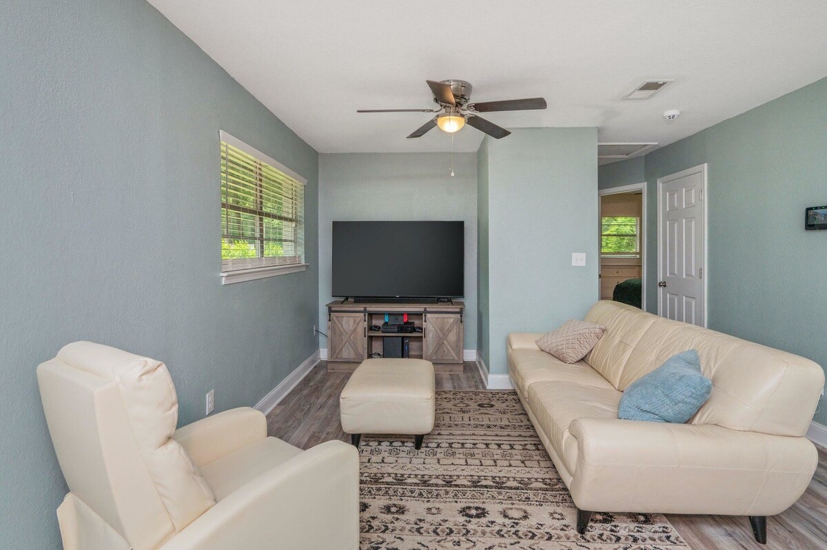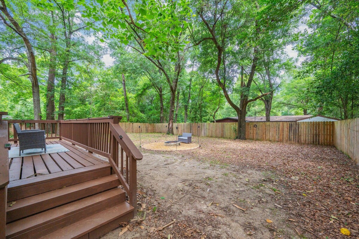 Inside, you'll find an open concept floor plan that seamlessly connects the kitchen, dining, and living areas for perfect everyday living. The kitchen features stylish butcher block countertops, a large center island with seating, stainless steel appliances, and ample cabinet space. Just off the kitchen is a convenient utility room with washer and dryer hookups and extra storage. Enjoy low-maintance vinyl flooring throughout the main living areas and tile in the bathrooms. Step outside to a spacious deck overlooking a large fully fenced backyard- ideal for kids, pets, and outdoor gatherings. This home offers convenience - to local resturants,shopping, downtown Crestview where community events are held throughout the year, and quick commute to I-10.