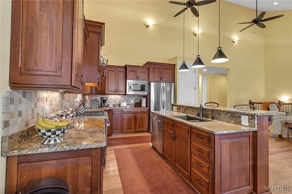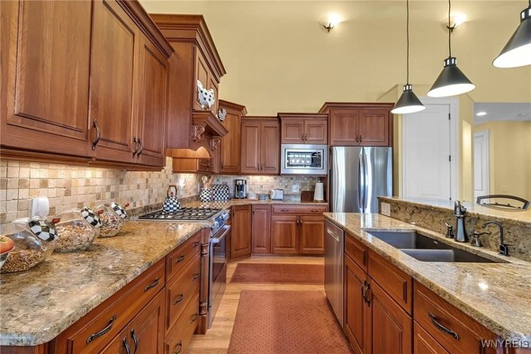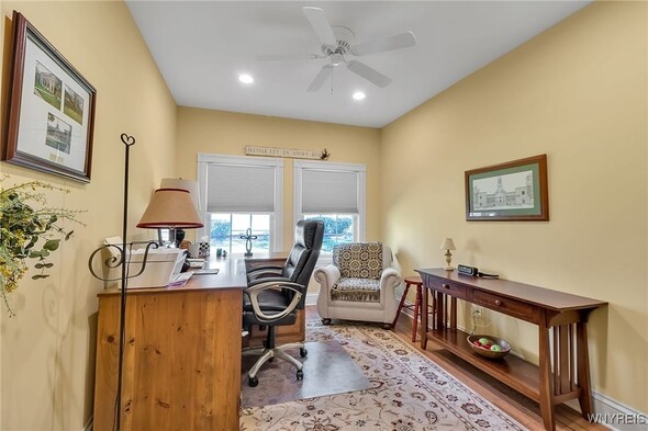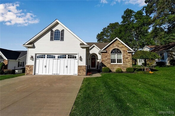 Beautiful custom built 3 bed, 3 full bath ranch overlooking Willowbrook Golf Course. Open concept layout with gorgeous hardwood floors: Great room w/ gas fireplace. Kitchen w/ cherry cabinets, island, granite counters & SS appliances. Plantation shutters on several windows & sliders. Large office w/ french doors. 1st floor laundry room. Sunroom overlooking rear yard. Sliders off dining area to rear deck (built in 2020) w/ motorized retractable awning & side privacy screen. Primary suite w/ double sinks, oversized shower, jetted tub & walk-in closet. 2nd bedroom w/ vaulted ceiling & double door closet. Partially finished basement w/ an additional bedroom, large bonus rm for entertaining, full bath & plenty of storage rm. 2 car attached garage. Yard irrigation system. Central air 2023. HWT 2022. Furnace 2019. Generac generator 2019. Roof 2011. Water softener system. Central vacuum on both floors & garage. Showings begin Wed. 11/5 at 12pm. Due to potential buyer interest, sellers request highest & best offers to be submitted by 12pm on Monday, Nov. 10th.