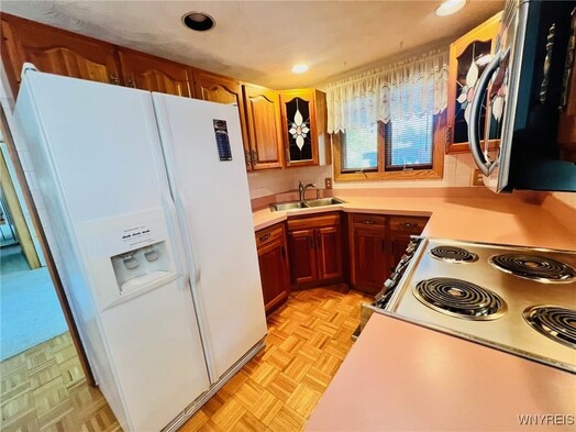 Welcome Home! This terrific brick Ranch has been lovingly cared for! Hardwood floors under carpeting on first floor! Cute breakfast area in kitchen with cherry cabinetry and appliances. Large formal dining room has oversized sliding doors that lead to huge deck and private yard! Nice sized living room, foyer, 2 bedrooms and full bath with walk-in shower. Awesome Full finished basement with dry bar, full bath and 2 possible bedrooms/office. Separate laundry area with storage. You'll love the large front porch, detached 2 car garage with enclosed patio attached! Shed, newer concrete driveway, furnace and A/C approximately 10 years, newer electric and HWT. This home offers a lot of living space and is great for entertaining!!