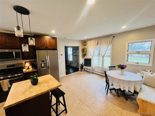 Gorgeous Country Home nestled on a scenic 2.2 acres! This home has been completely renovated starting in 2017, 3 large bedrooms with amazing closet space! 2 Full remodeled baths, separate shower, large and bright eat in kitchen with island and newer appliances. Formal dining room has French doors to the charming covered front porch. The great room is outstanding! Vaulted ceilings, Cornered Electric fireplace (2023) and the 85 mounted TV will stay! (2 years old). Large first floor laundry room/mudroom with luxury floors leads to side entrance and cute covered side porch overlooking fantastic peaceful views. Pick your own apples and peaches! Barn has new metal roof (2023), horse stall now being used as chicken coop! Bonus! The chickens can stay! Pex plumbing, generator, water softener, most newer windows, doors and lighting. High-efficiency boiler with indirect heat water tank(2017), newer insulation(2017), all new flooring, newer electrical service. The (2025) six person hot tub is negotiable! Playset can stay! Showings begin immediately - Open House Saturday, February 28th and Sunday, March 1st 11am - 1pm.
