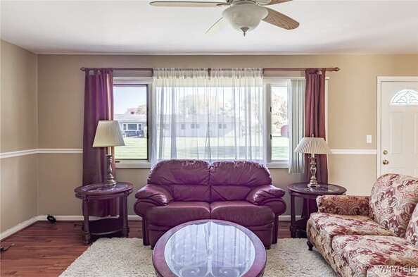 The Price is Right on this ground floor ranch condo in Niagara County! Whether you're downsizing or just looking for everything on one floor, this home has it all: 3 bedrooms, a full bath, and a convenient half bath off the primary bedroom for privacy. The kitchen is stocked with every appliance you need, including the first floor laundry. Mechanicals inside feature central air and tankless hot water. The spacious living room/dining room combo leads out to the back patio where you can spend your weekends relaxing while the HOA maintains the lawn and landscaping in the summer, and removes the snow in the winter. Easy living awaits!