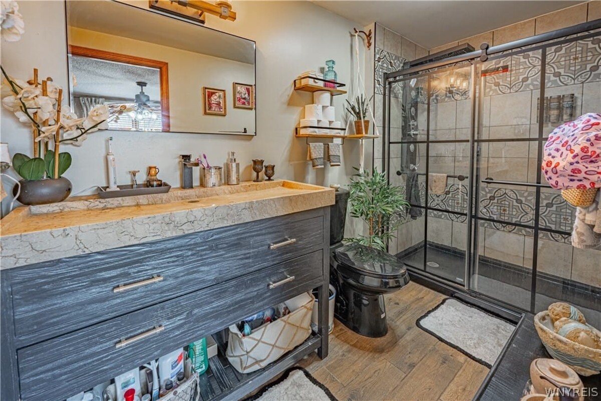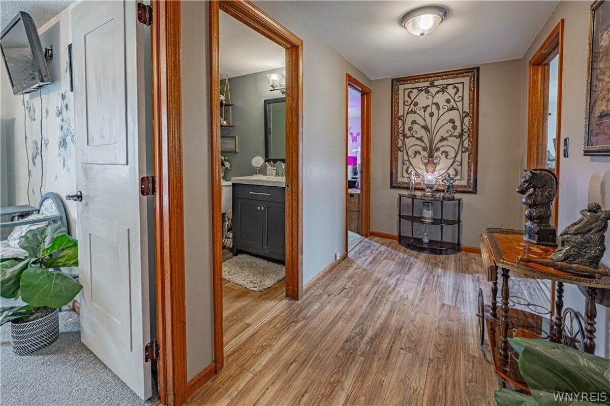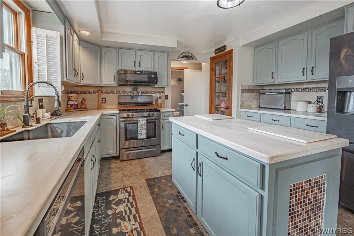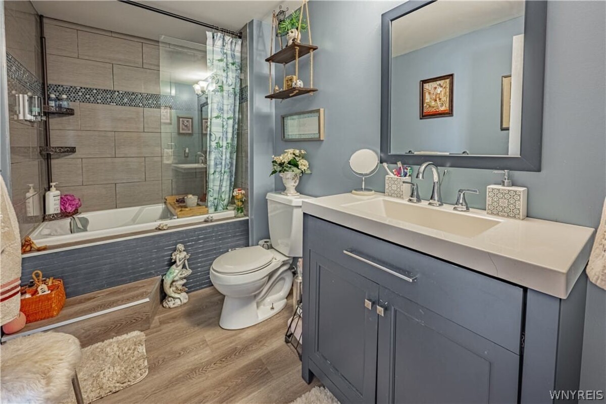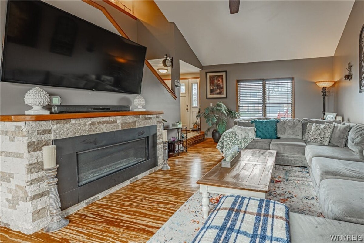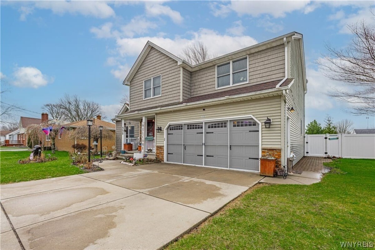 The perfect house does exist! Check out this 3 bed 2.2 bath GT Custom Homes Colonial in North Tonawanda. You want updates? We've got updates, all within the past 5 years! Inside there's 2 full bath remodels, jacuzzi tub and shower in one, walk in shower in the en suite bath; Corian kitchen countertops and backsplash with new stainless-steel appliances: fridge, stove, dishwasher and slim microwave; 3 gas fireplaces including a Monessen ventless w/Amish mantle in the living room to accent the Tigerwood flooring; new 1st floor laundry cabinetry, shelving and stationary tub; a gas fireplace to keep the garage warm, extra electric and garage door with breeze screen; LVL flooring, new light fixtures, entry and bedroom doors, window blinds throughout; primary bedroom closet storage and a California Closet bedroom. Outside you'll find a gardener's dream yard with an updated vinyl fence with entry gates on both sides, meticulous landscaping, raised garden beds, Koi pond, firepit gathering area, patio with pergola and walkway, LED outdoor lighting, and hot tub. Finally, let's top it all off with some curb appeal, peace of mind, and something to Billieve in: updated maintenance free cedar shake shingles and stone veneer show off the front, a new sump pump and Generac generator protect it all while you Shout in your true Bill's basement with bar, fireplace and it's own 1/2 bath. House is located within walking distance to Thursdays on the Water, Klydel Nature Trail and Mid-City Plaza. Open houses Saturday and Sunday from 1-3pm. Negotiations begin 4/22/26 at Noon.