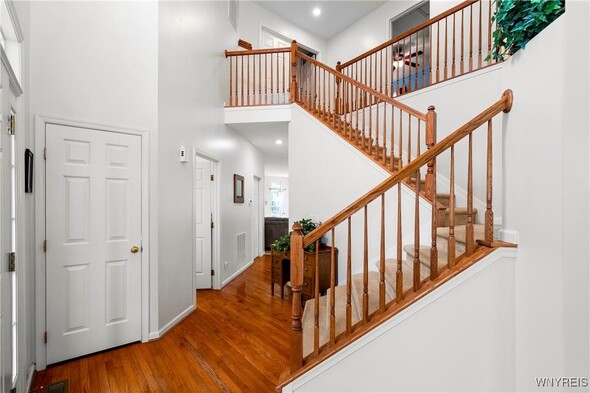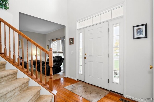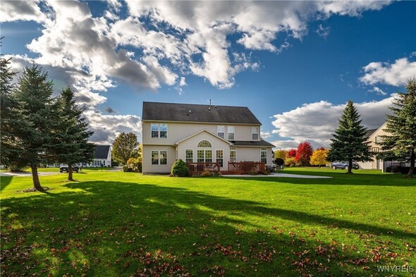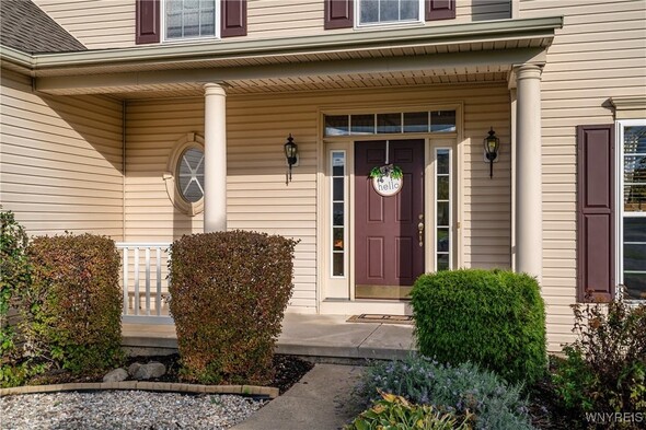Welcome to 76 Graystone, a meticulously maintained home ready for its new owners. This center-entrance Colonial greets you with a bright, two-story foyer with gleaming hardwood floors through most of the first floor. The windows let in an abundance of natural light. The kitchen, ideal for entertaining, features stainless steel appliances and a convenient center island perfect for quick meals. Adjacent to the kitchen, the morning room provides a tranquil space overlooking a private, wooded backyard. A sliding glass door leads to a deck, offering a serene spot to enjoy your morning coffee. The family room, complete with a gas fireplace creates a cozy option and extends the entertaining space from the kitchen. A formal dining room and living room round out the rest of the first floor, along with a first-floor laundry and a half guest bath. Up the split staircase, the second-floor features four generous bedrooms and a guest bathroom. The primary bedroom includes a private bathroom and a walk-in closet. The basement is pre-plumbed for a bathroom, should you wish to finish the space. Recent updates include a new furnace and central A/C in 2018, a new hot water tank in 2022, and a new sump pump in 2025. You will surely want to make this your home for the Holidays!
