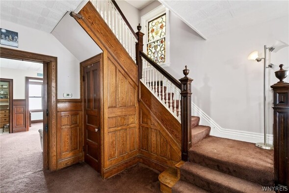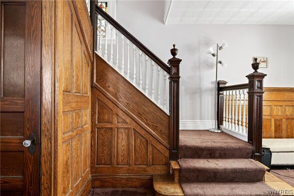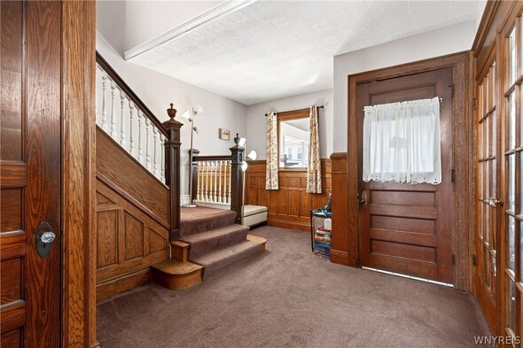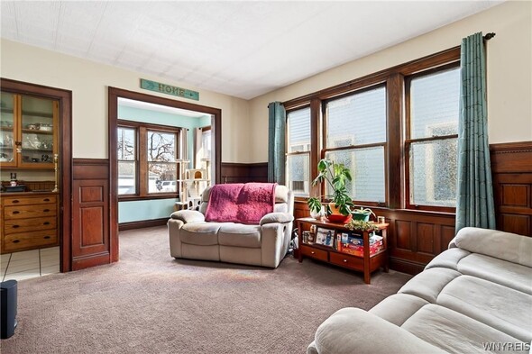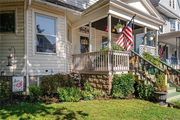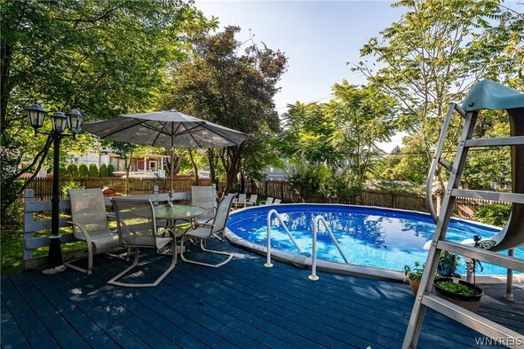 Rare find on a double lot in South Buffalo steps to Cazenovia Park. This 4-bedroom Colonial offers beautiful natural woodwork, leaded glass windows, pocket doors and tasteful updates. Kitchen features quartz countertops, walk-in pantry and center island. Large formal dining room perfect for entertaining. Large living room with gas fireplace. Upstairs you will find four generous bedrooms with great closet space. All bedrooms are carpeted with original hardwoods underneath. What a great yard featuring great deck, above ground pool has new liner 3 years young, hot tub/spa and fully fenced in yard. Electric and Plumbing have been upgraded. Basement walls all dry locked. Treat yourself with a tour of this home and your own backyard oasis. Offers due February, 2/25/26 @ 12pm.