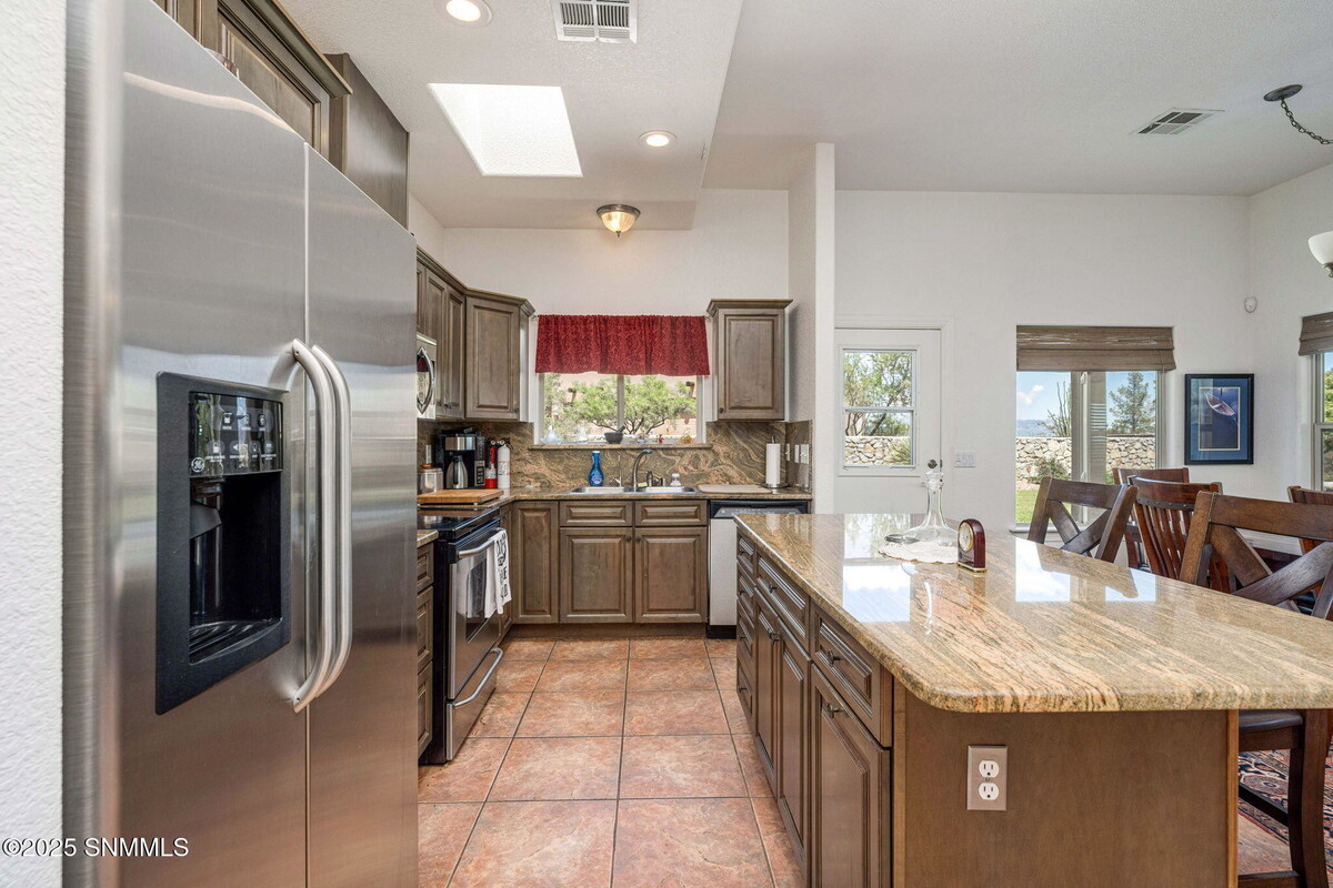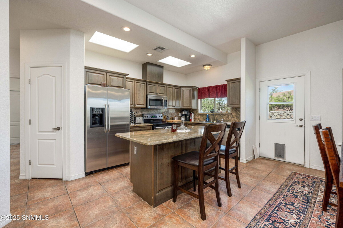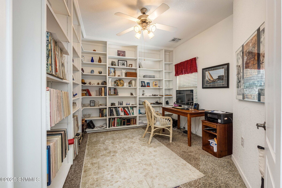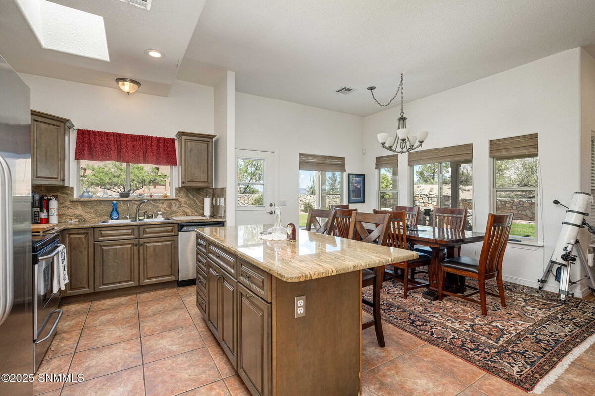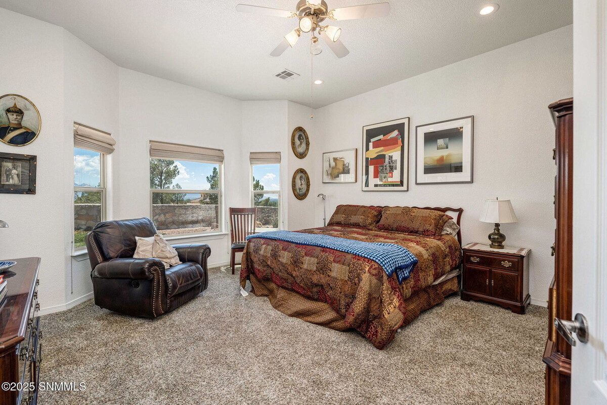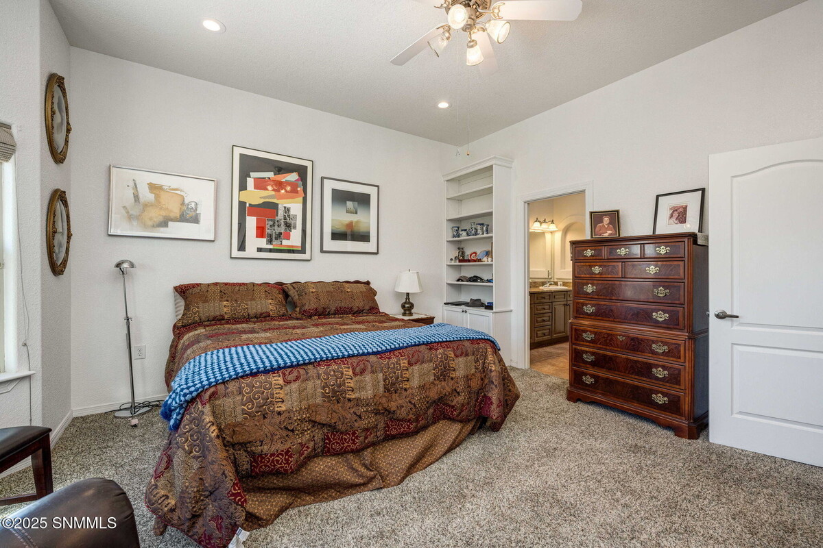 Nestled on a tranquil cul-de-sac in the sought-after Picacho Hills community, this elegantly designed 3-bedroom, 3-bathroom residence with a dedicated office provides 2,090 square feet of refined living space. Enter to discover a bright, open floor plan that effortlessly unites the living, dining, and kitchen areas--ideal for entertaining or quiet relaxation. The great expansive room showcases sophisticated tile flooring and a striking Kiva fireplace, cultivating an inviting ambiance. The gourmet kitchen features granite countertops, premium stainless-steel appliances, and ample cabinetry for storage.The split floor plan ensures privacy, with a generous primary suite boasting serene mountain views and a luxurious en-suite bath. A spacious guest bedroom is ideal for visitors, while the dedicated office/library offers built-in shelving, making it a perfect work-from-home space or reading retreat. A standout feature of this home is the separate guest quarters, which have their own entrance--