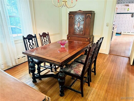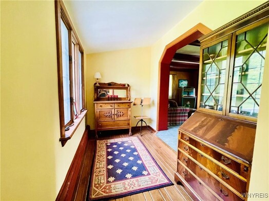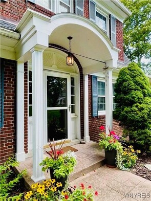 Must see! Quality construction in a traditional center-entrance home set on lovely deep lot. Beautiful craftsmanship, wainscoting, details. Gorgeous wood floors on first level & whole upper story. Home is flooded with wonderful light. 1st floor has formal dining room and gracious Living Room w/elegant woodburning fireplace. A pretty passageway leads to the deck & to an appealing, multi-purpose Family Room featuring handsome library wall; Fam Room opens to a sweet screened patio. 2nd floor has four Bedrooms & full Bath. The principal Bedroom is huge in size with windows gracing three walls w/a pretty view to backyard. It boasts 2 walk-in closets (1 perfectly-situated for future ensuite bathroom). There are 3 other bedrooms with good closets & storage. The home has been lovingly maintained. Full basement & stand-up attic w/pull-down stairs show a house constructed the way they should build them. Kitchen has wonderful cupboards & built-ins, with large footprint, open to possibilities. Updated electric, beautiful grounds. Great Location w/Iroquois Central Schools. A happy home, ready to welcome new owners!