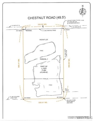 Great opportunity to own beautiful 12.29 ACRES of beautiful Land with Ponds. 550 ft along Chestnut Road, 989 ft deep. See attached Survey. Municipal Water is at street; To build, Septic and Propane would be needed. While this Land may be bought on its own, Seller's hope is to sell this parcel to Purchaser of 5948 Chestnut (house on 4.1 Acres) See MLS B1657954. Buyer would then own a 16.5 acre Parcel with ponds. Property is staked. Full-size 2024 Survey will be furnished. PLEASE DO NOT WALK THE LAND WITHOUT APPOINTMENT.