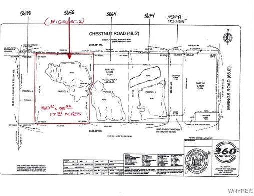 ABSOLUTELY GORGEOUS parcel of LAND! 17.3 ACRES with Spectacular POND. EXCEPTIONAL SITE on which to Build your Dream Home... or to simply Relax, Fish, Hunt. This beautiful Parcel is 780.5 Feet wide along Chestnut and 991 Feet Deep. SEE ATTACHED SURVEY. Property is staked. Municipal Water is at street; Septic & Propane would be needed. Municipal Approvals are all in place, ready for Building Permit Application. Newfane Schools! PLEASE DO NOT WALK THE LAND WITHOUT AN APPOINTMENT.