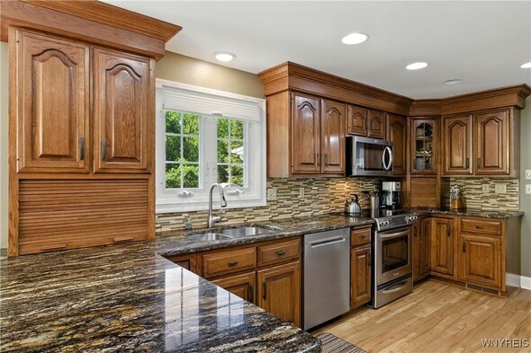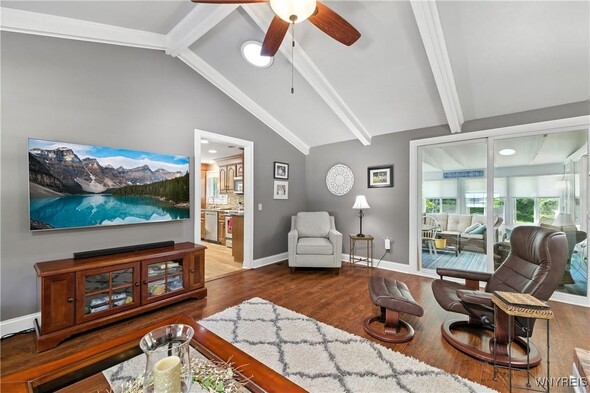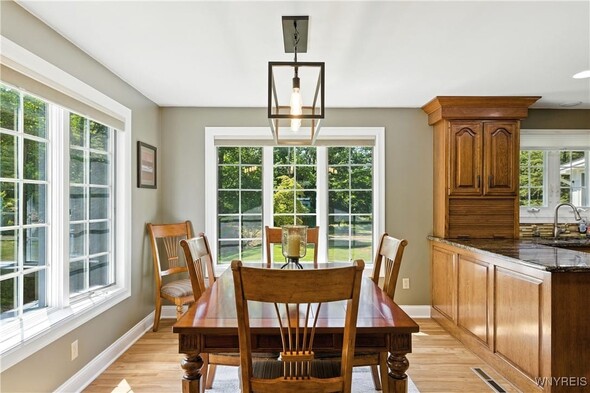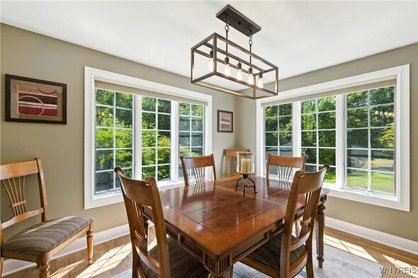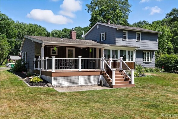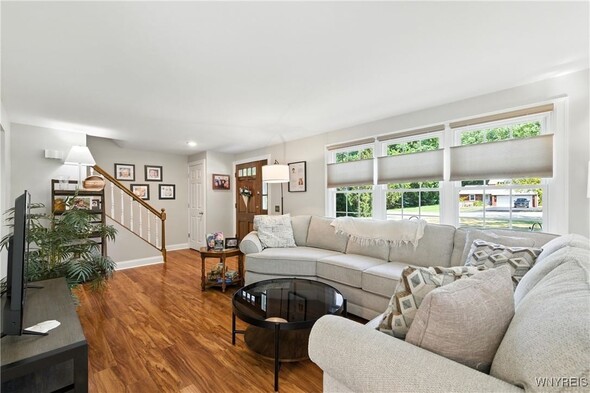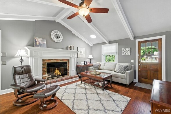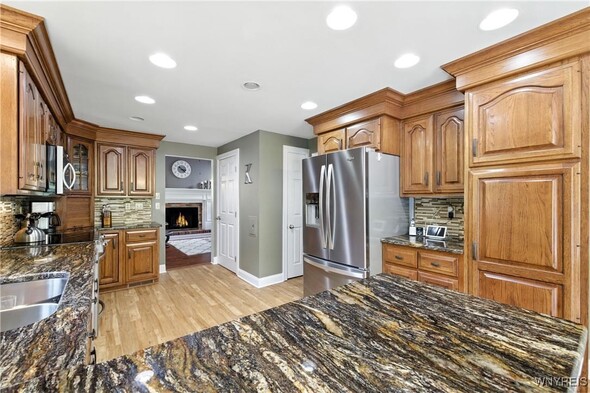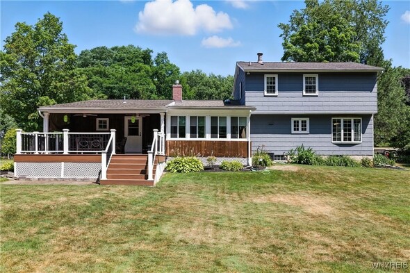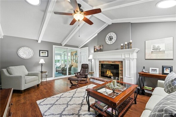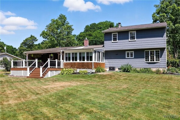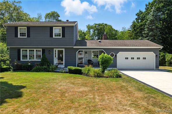 Pristine and well maintained! This beautiful 3 bedroom, 2 full bath home is ideally situated in a park-like setting. It features a cozy family room with a cathedral ceiling and a gas fireplace with a custom mantel, complemented by elegant hardwood flooring. The open kitchen, remodeled in 2018, boasts granite counters, crown molding, ample cabinetry, newer appliances, and a spacious eating area. There is also a distinct living room, and a convenient full bath on the first floor. A lovely sunroom offers a perfect spot to enjoy morning coffee or evening cocktails. The second floor provides three generously sized bedrooms, each with large closets, and a full bath. Outside, you'll find an expansive and private backyard with a partially covered patio, all beautifully landscaped. Recent mechanical updates include the hot water tank (2020, 2024), A/C (2023), and a roof less than 10 years old. Both the kitchen and baths were remodeled in 2018. Additional square footage of 178 not included in tax records accounts for finished space. Garage floor has new epoxy finish.