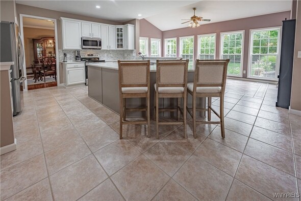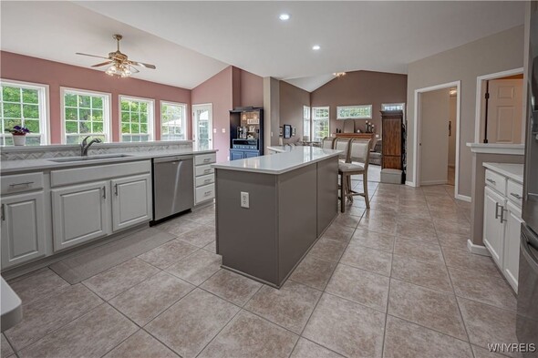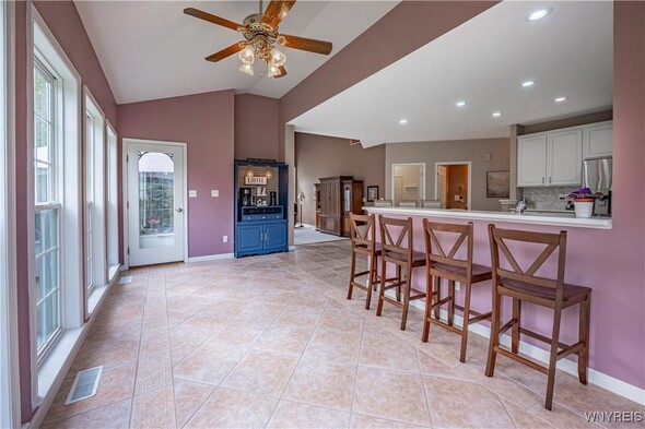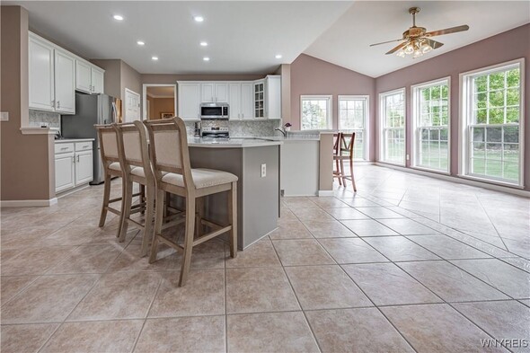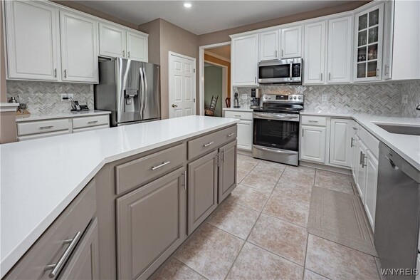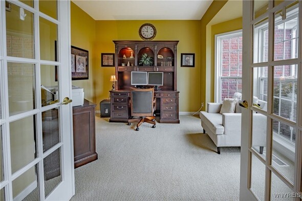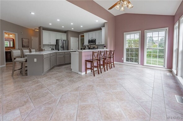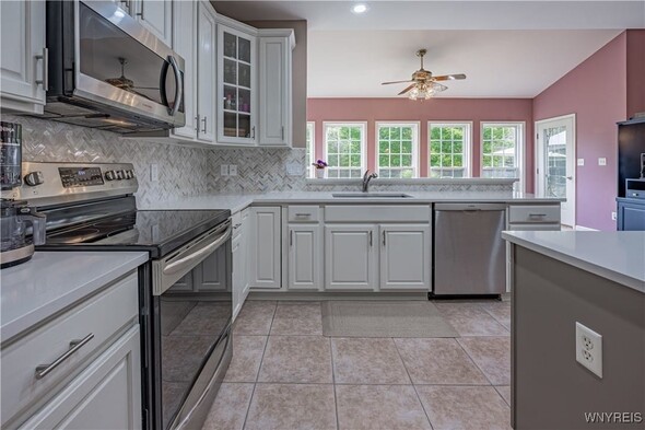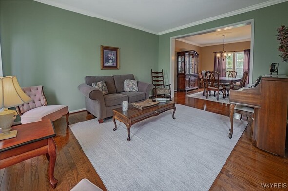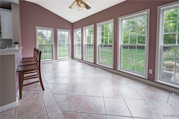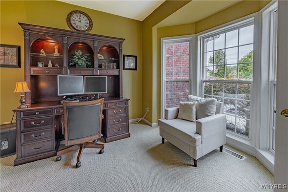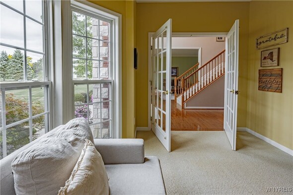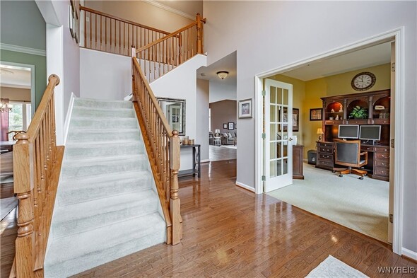 Pristine and well-appointed. Custom-built 4-bedroom, 2.5-bathroom home located in the established Arrowhead Estates, Pendleton. Starpoint Schools. This exceptional property offers a tranquil living experience, situated on a cul-de-sac/dead-end street. The grand two-story foyer leads to a modern eat-in kitchen featuring quartz counters, a detailed backsplash, an oversized island, and a breakfast bar. Enjoy the bright and inviting morning room with a vaulted ceiling. The great room boasts transom windows, a gas fireplace, and a Juliet balcony overlook. A first-floor laundry room with a utility sink, Living room, and a dining room with crown molding and hardwood floors complete the main level. French doors open to a private den, perfect for a home office. The second floor offers four large bedrooms, including a primary bedroom with a newly updated bathroom (2025) featuring heat lamps. The second bathroom also includes double sinks and a heat lamp. This backyard is an entertainer's dream with no rear neighbors. Tasteful landscaping that enhances the homes beauty and curb appeal. It boasts a private Unilock stone patio with side walls, and a vinyl gazebo placed over the patio conveys with the property. The roof was replaced in 2014, the A/C unit 2007, and the hot water tank is approximately five years old. The home also features an upgraded air purification system and a newer updated front door with sidelights and a transom window. All furnishings are available for sale. No escalation clauses please.