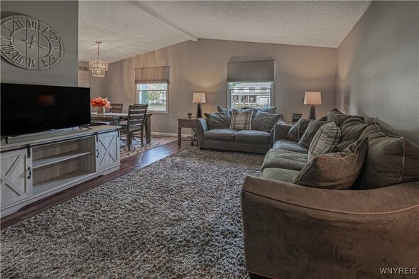 Location, location, location! Town of Lockport. This property offers 3 bedrooms and 1.5 bathrooms. The interior features an inviting open-concept living room, dining area, and kitchen, which was updated with new appliances in 2022 and includes a convenient breakfast bar. Additionally, there is a spacious family room equipped with a cozy wood-burning stove, perfect for cooler evenings. The primary bedroom boasts a walk-in closet, and the home also includes a partial basement, providing extra space. Further enhancing this home's appeal are its exterior amenities, including a 2-car garage and a private patio that is ideal for entertaining guests. The large and inviting yard offers ample outdoor space and privacy, with no rear neighbors, along with a shed for additional storage. This home is truly move-in ready! Back on market due to no fault of property or seller.