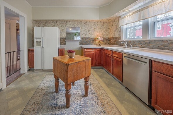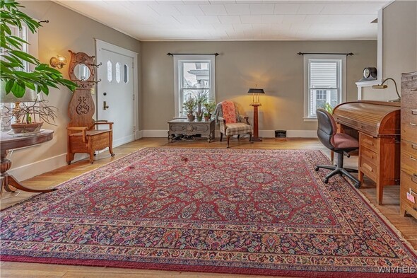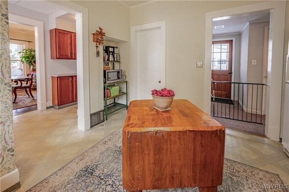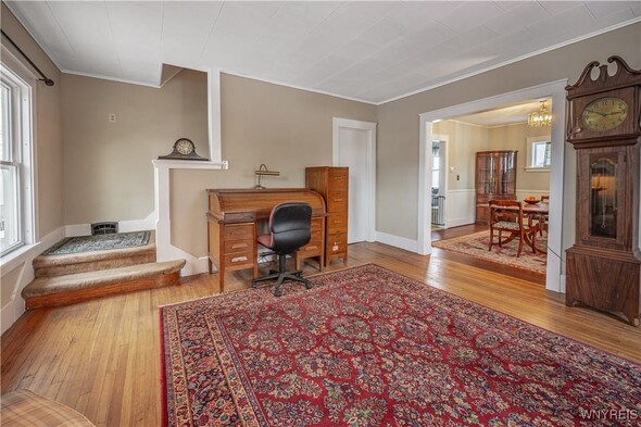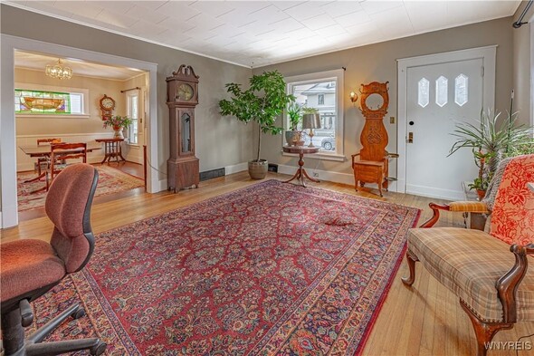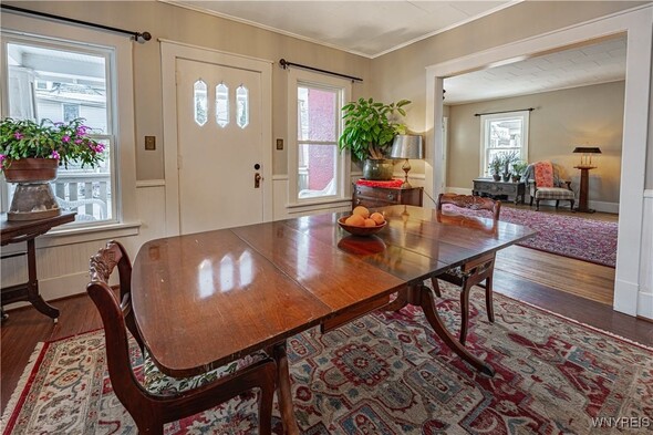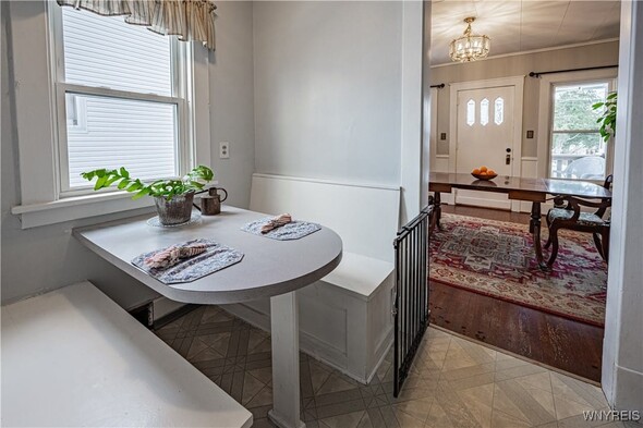 Arts n Crafts inspired home nestled in a park like setting with fenced in yard. Cozy front porch for morning coffee. Open living rm w/ tall ceilings, dining rm, kitchen with walk thru butlers pantry and original eating nook w/ table and benches. Bright with pass thru to great room. Large and inviting great room with access to back deck and fenced in back yard. Second floor complete w/ 3 bedrooms and walk in storage rm (heated) that could be 4th bedroom. Full bath completely renovated. Hardwood floors throughout the home. 1.5 car detached garage. Fenced in yard and back deck with lots of privacy. Many updates; glass block windows, Furnace approx. 4 years old, newer HWT, Roof 13-15 years (40 yr architectural complete tear off) Newer windows. 2022-New AC, Dishwasher, fenced in yard, 2023. Concrete driveway, vinyl siding, exterior house painted, torn down and rebuilt porches and vestibule, gutters and storm door, bathroom complete remodel. Glass block windows. Truly a must see.