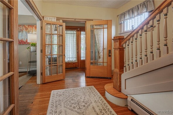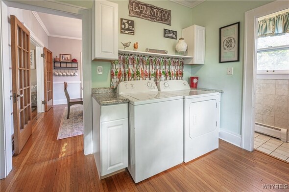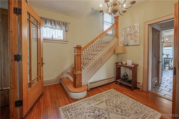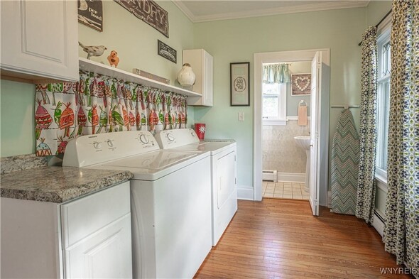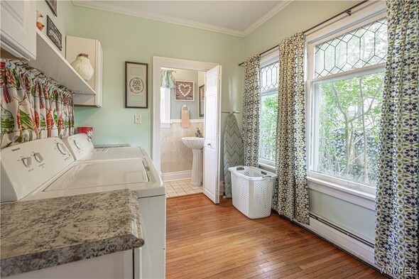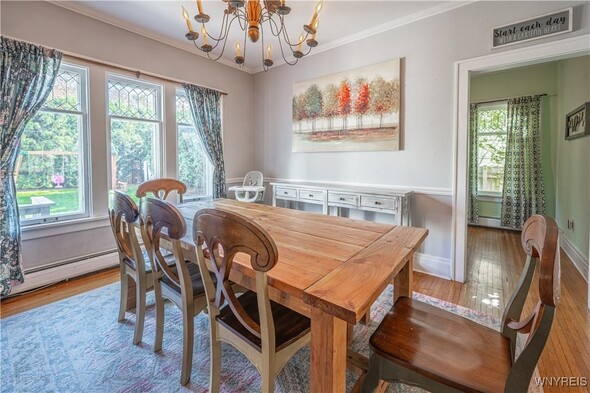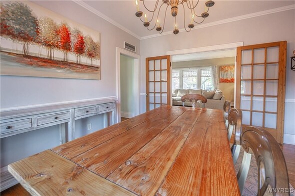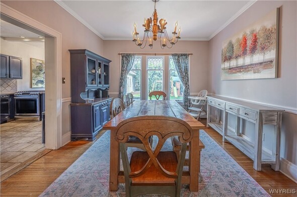 Timeless 2 story 3 bed 1.5 bath in the heart of Lockport historical district. Spacious with defined rooms, large case openings, and nearly 2,000sqft of original woodwork, hardwood floors, glass doorknobs, and custom built-ins. The first floor offers foyer, living room w/ woodburning fireplace, formal dining room, eat in kitchen with included appliances for buyers convenience, 1st floor laundry room, and half bath. The second floor offers 3 large bedrooms, full bath, and walk up attic access that is ready to be transformed into the ultimate flex space. The primary bedroom boasts 2 walk-in closets and spans the entire length of the home. Outside enjoy a large covered porch, fully fenced private backyard, shed, and detached fully insulated garage. Other highlights include new furnace 2024, and full basement w/ storage & workshop area. Offers will be reviewed as they are received; dont wait to view this incredible property.