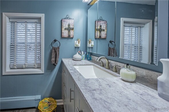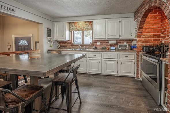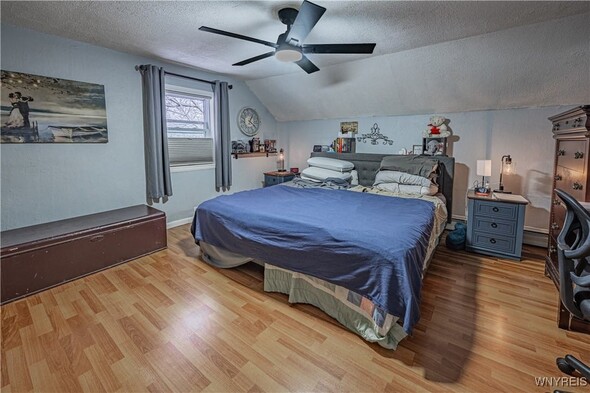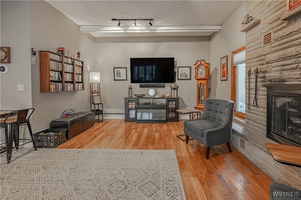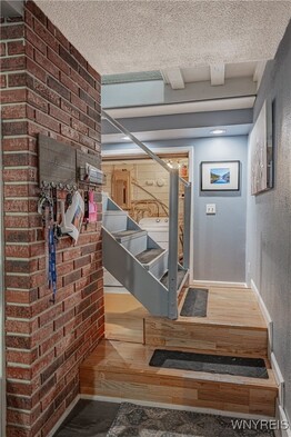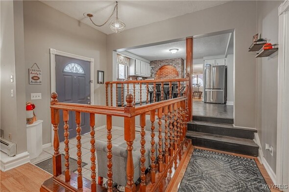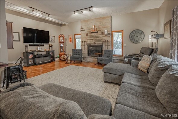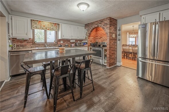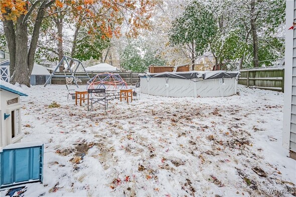 This iconic brick arch colonial has over 2,500+ sq ft w/ 4 bedrooms & 1.5 Bath. On the main floor you are welcomed by large den w/ vaulted ceilings, wood burning fireplace, & motorized movie screen w/ projector (2023) perfect for watching Bills games. Open sightlines to the kitchen with custom brickwork & eat-in area. The bonus room is currently being used as a large walk in mudroom/closet but would make a great office/study. The first floor also has a formal dining & living rooms, 1st floor laundry area, & half bath. Upstairs offers 4 bedrooms and 1 full bath which was updated in 2023 w/ new tub/surround, vanity & flooring/fixtures. Peace of mind with all updated major mechanicals, Roof full tear-off (2021), Tankless HW (2021), Hi-Eff Furnace (2021) as well as new main sewer line to public connect. Outside, enjoy fully privacy fenced, above ground pool w/ deck (liner 2025 & pump/filter 2023), patio area, and 2 car garage w/ new garage door openers and shed in the backyard. Offers will be reviewed as received so dont wait to tour this great property. Open house Saturday, November 15th from 11-1pm.