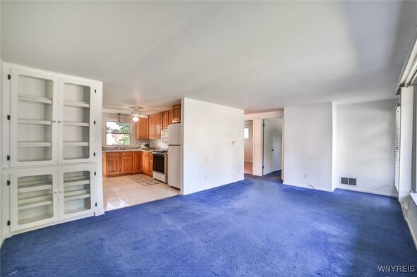 This well-maintained ranch style home with its coveted one floor living plan and attached garage is located right in the heart of the village of Springville within walking distance to pickleball courts, splash pad park, and all that Main St. has to offer. This 750 sq.ft. home features 2 bedrooms and a spacious living room that all have original hardwood floors underneath the current wall-to-wall carpeting. Bonus room off the back of the house could be used as a den or home office. The freshly painted full basement is dry and spacious, making it perfect for a future finished recreation room. Updates include a new roof (2020), most windows replaced (1996), new HWT (2023), freshly painted siding (2024), and refreshed landscaping all around the house (2025). All appliances convey with the sale. Water softening system is in place, but currently diverted. Offer deadline is Tuesday, September 9th @ 3pm.