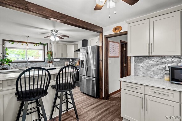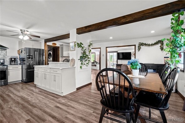 Welcome to your move-in ready dream home where all updates have already been done for you! This stunning property boasts a beautifully renovated kitchen featuring sleek cabinets and quartz countertops that add a modern flare to the space. The open concept design creates a seamless flow throughout the kitchen, dining, and main living room areas, highlighted by luxury vinyl flooring that extends throughout the entire first floor. The homes two full baths have both been tastefully renovated with rustic farmhouse touches. Convenient first-floor laundry, mudroom, and a spacious two-car garage with a bonus den/office attached provide ample space, storage and functionality for all your needs. Enjoy outdoor living on the large deck overlooking a spacious, fully fenced yard, perfect for gatherings or simply relaxing. Located just minutes from Lake Erie beaches, shopping, restaurants, and other Hamburg amenities, this home offers the perfect blend of comfort and convenience. OPEN HOUSE Sunday 1/18/26 from 11-1pm. Due to an influx of showings on the property, sellers have decided to initiate an offer deadline for Sunday, 1/18/26 @ 5pm.
